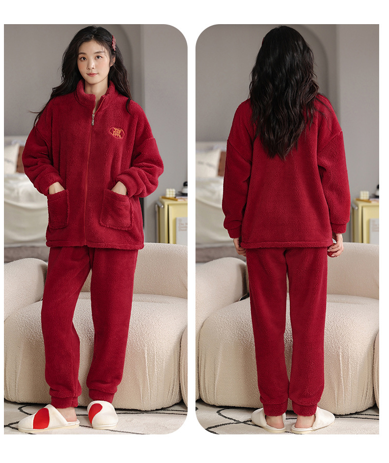 蛇年红色睡衣本命年珊瑚绒情侣秋冬结婚家居服冬天加绒保暖男女士