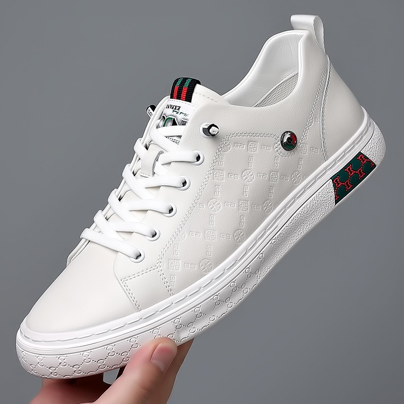 8776春の新型通気性男性カジュアル靴の流行は板靴の本革を合わせて白い靴を漕ぐ