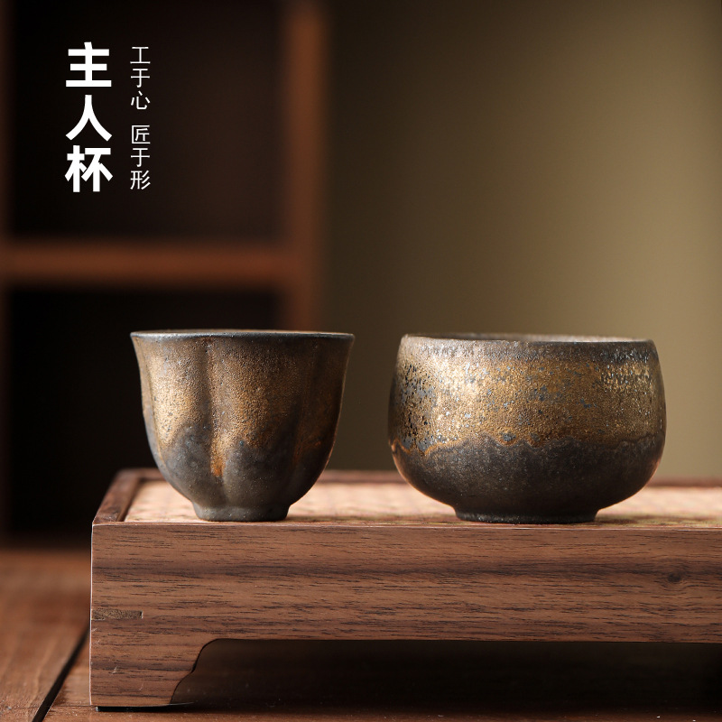金メッキセラミックティーカップシングルカップ日本カンフー茶セット家庭用パーソナルカップティーカップマスターカップ小さな茶碗卸売
