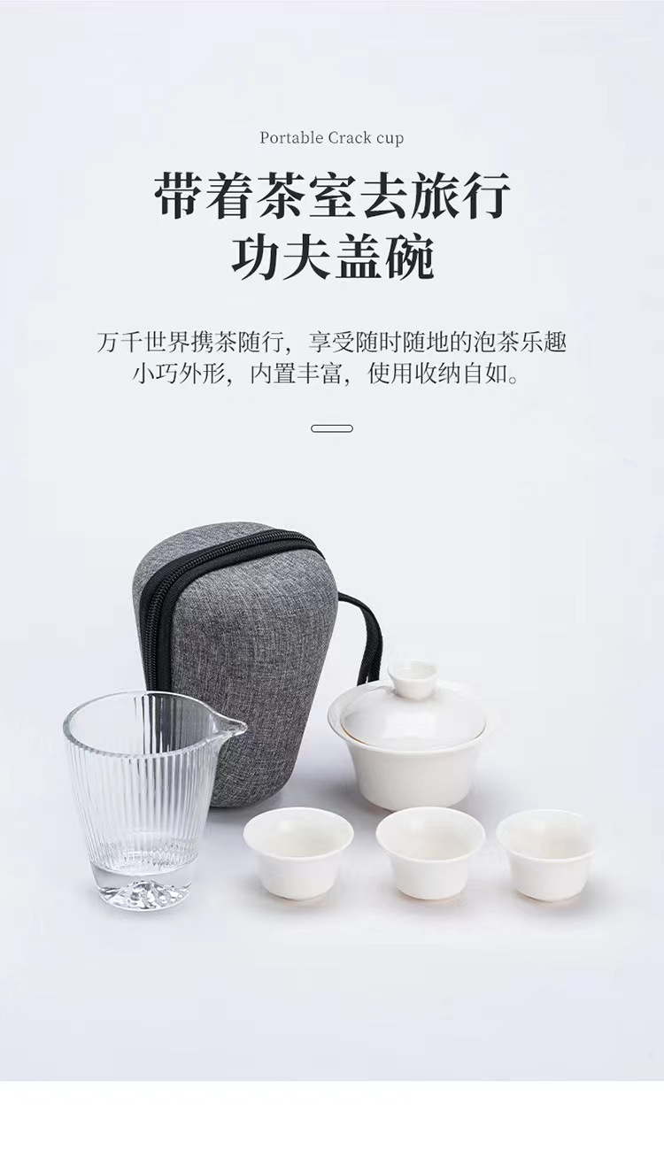 ガラス旅行茶器セット携帯式陶磁器快客杯セット屋外工夫茶杯ティーポット