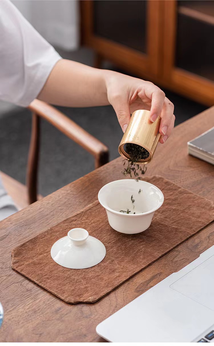 白磁の茶荷の磁器のお茶は陶磁器のお茶を鑑賞します。