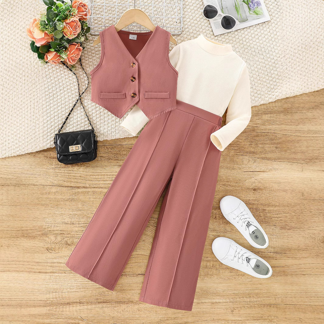 メーカー卸売り気質高級小香風薔薇紅スーツ馬甲ズボン高襟シャツ三点ファッションスーツ