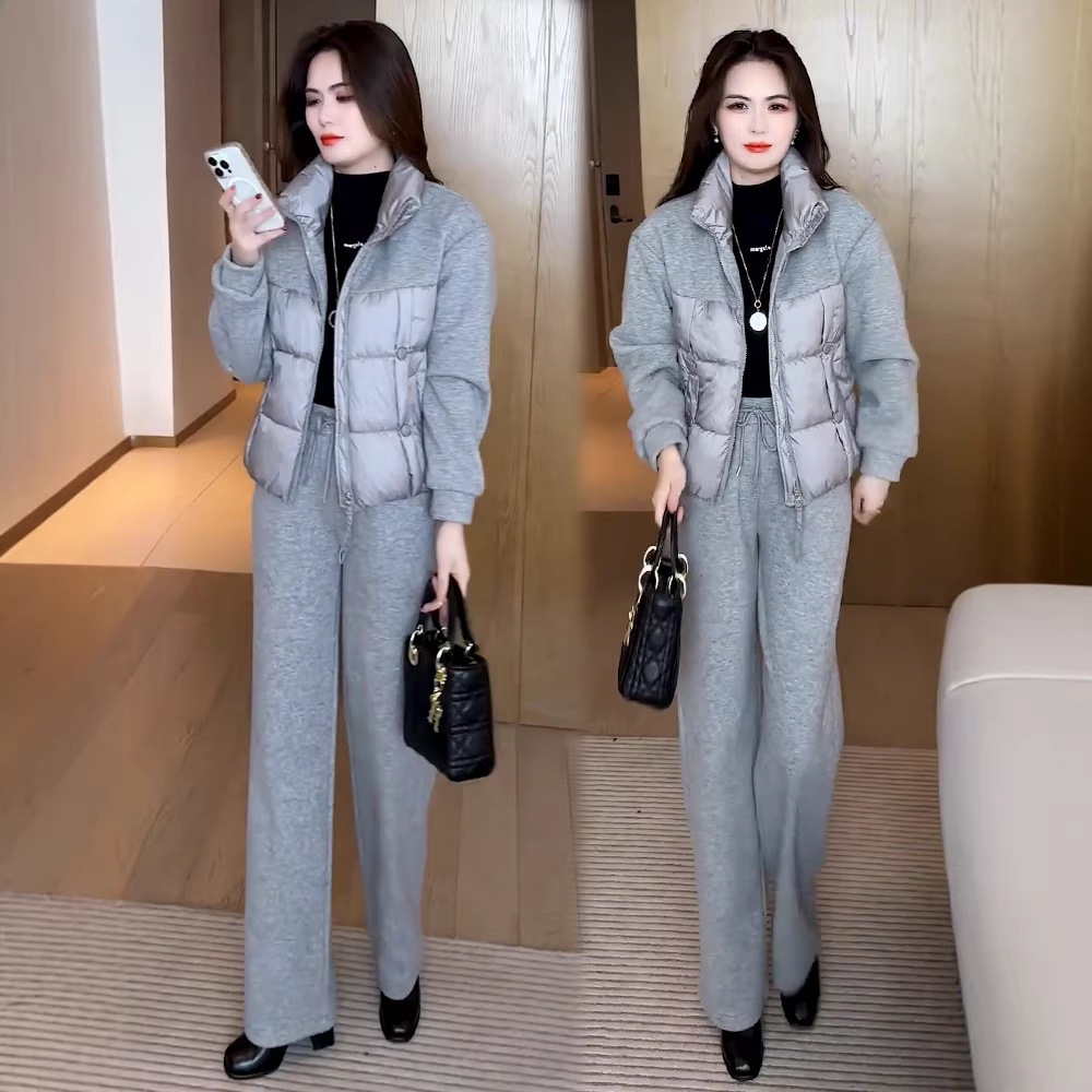 时尚休闲套装女2025冬季新款时髦洋气羽绒棉服外套阔腿裤两件套潮
