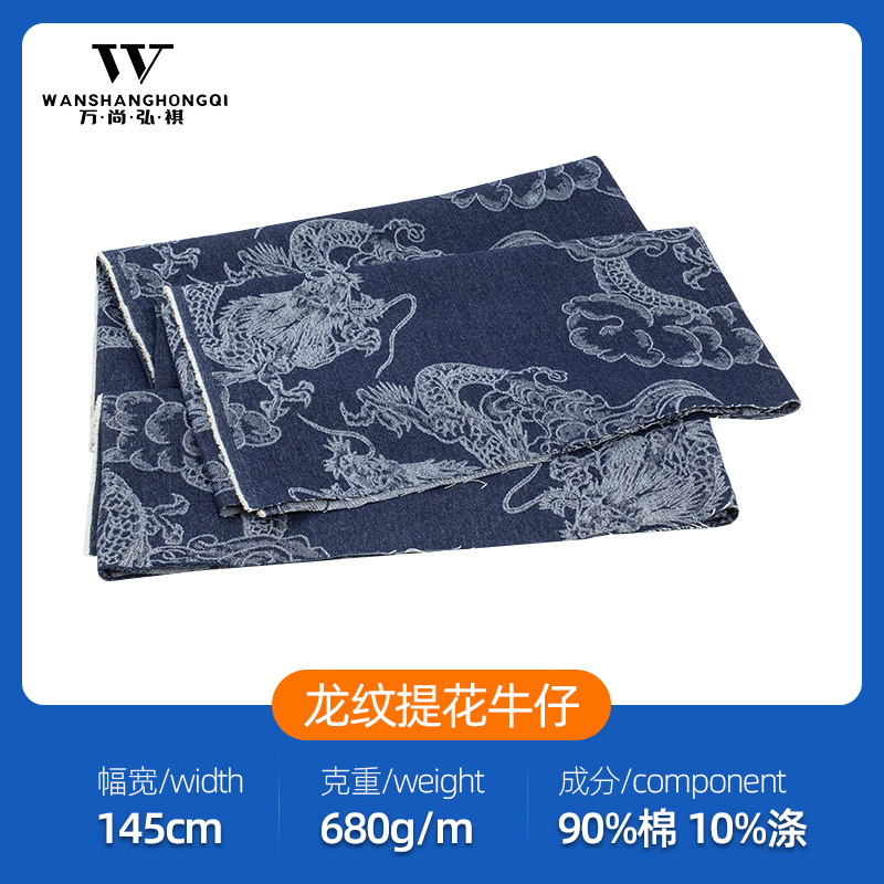 メーカー現物龍紋ジャカード水洗いデニム生地高級子供服ジーンズコート秋冬生地