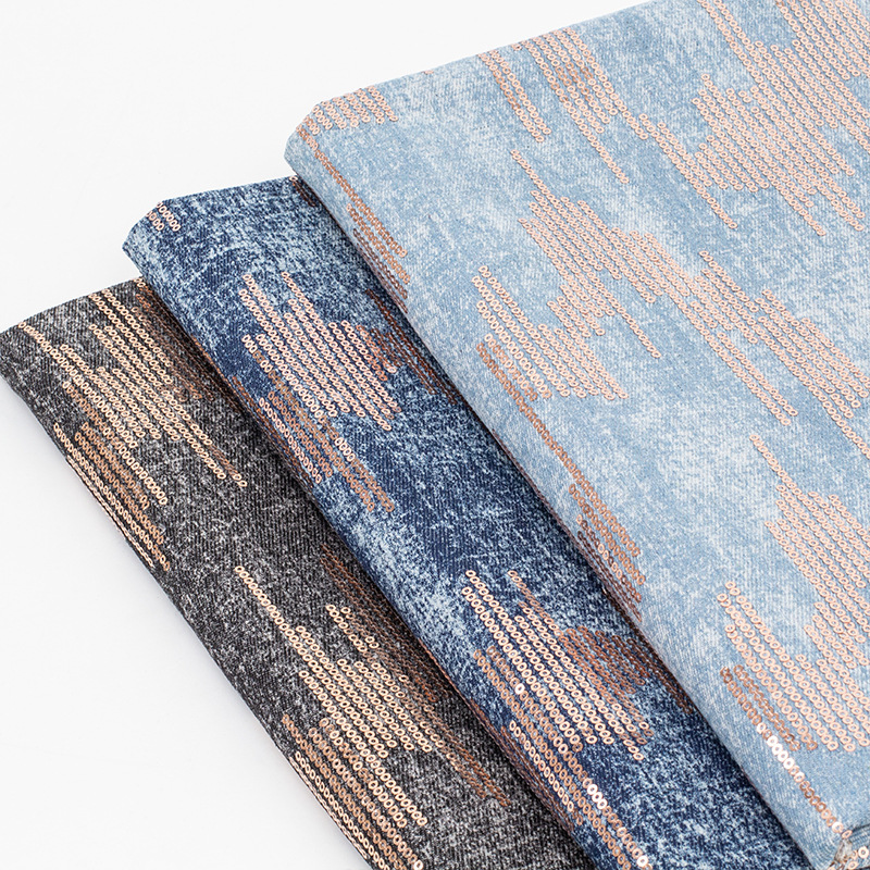 スパンコールは白を拭いて古い洗水デニムの布地を作ります。
