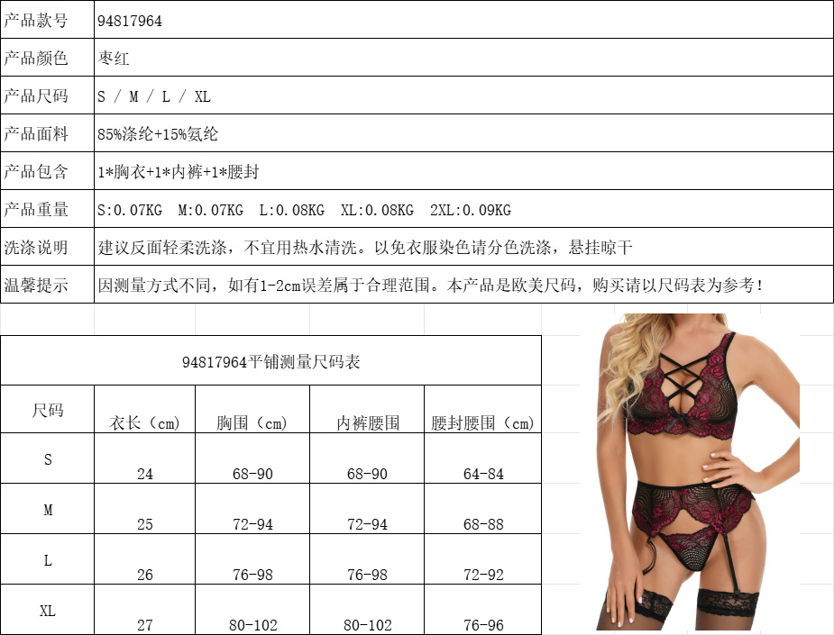 速売通趣味下着セットレース三点式調節可能肩ひも透視靴下下着三点セットスポット