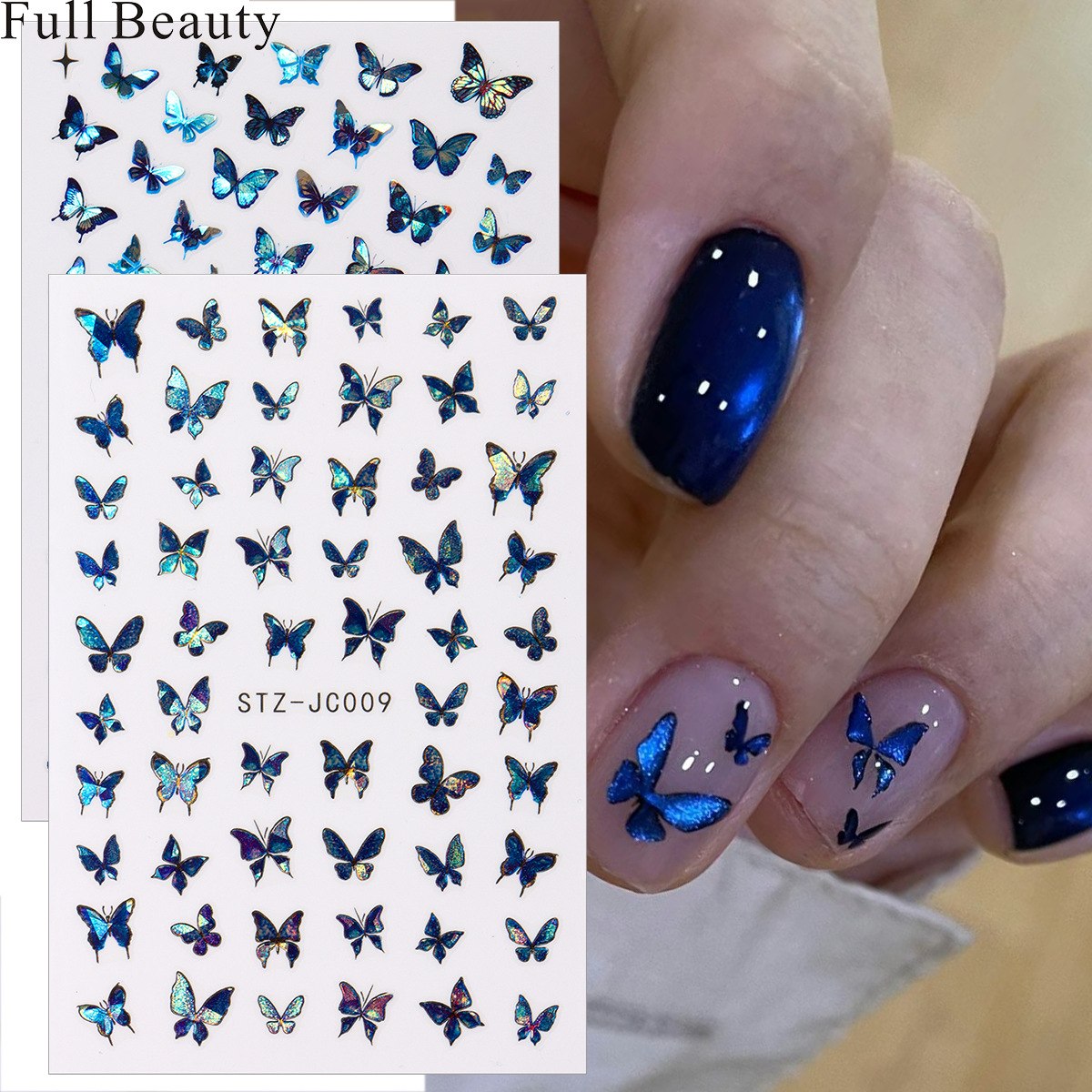 フルビューティークロスボーダー新しいネイルアートステッカーレトロブルーバタフライカラーホットシルバー蝶ネイルアートステッカー