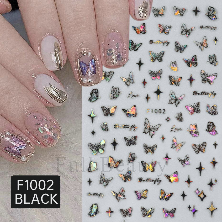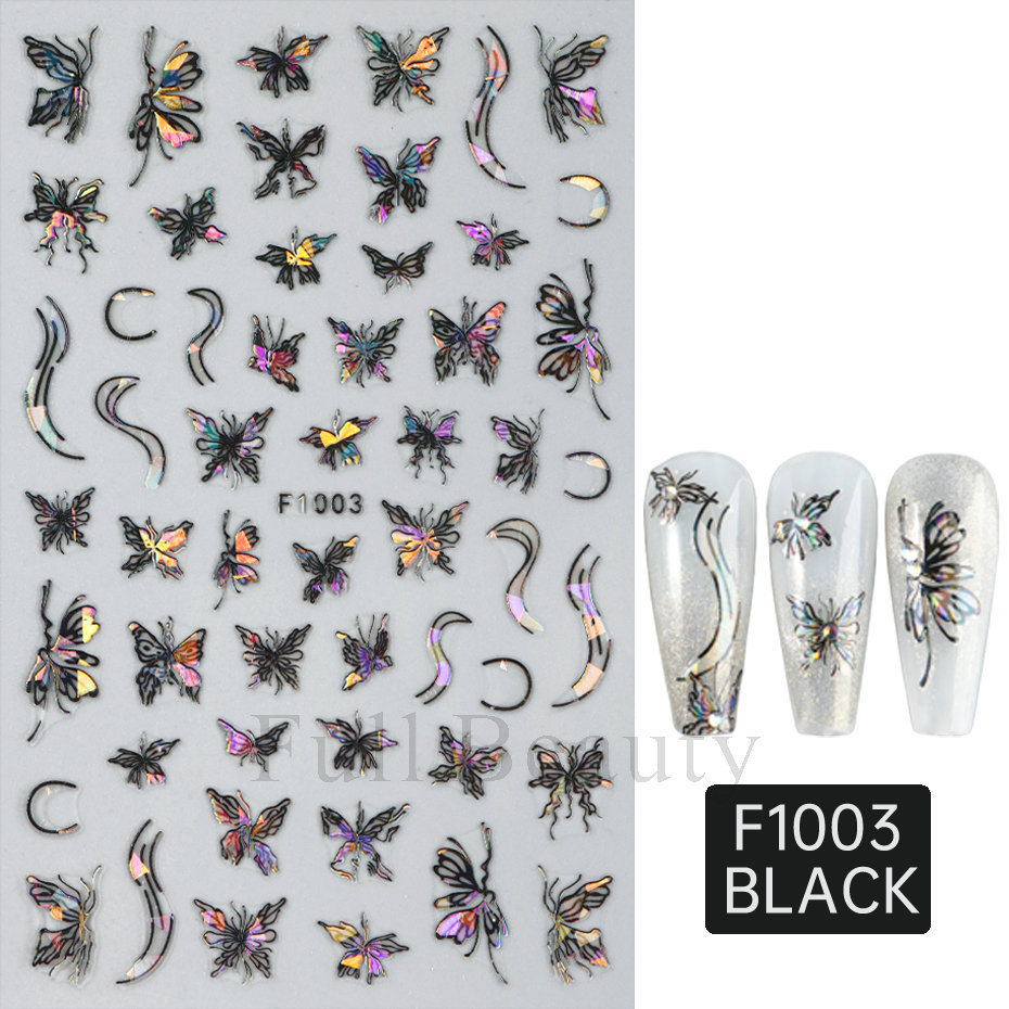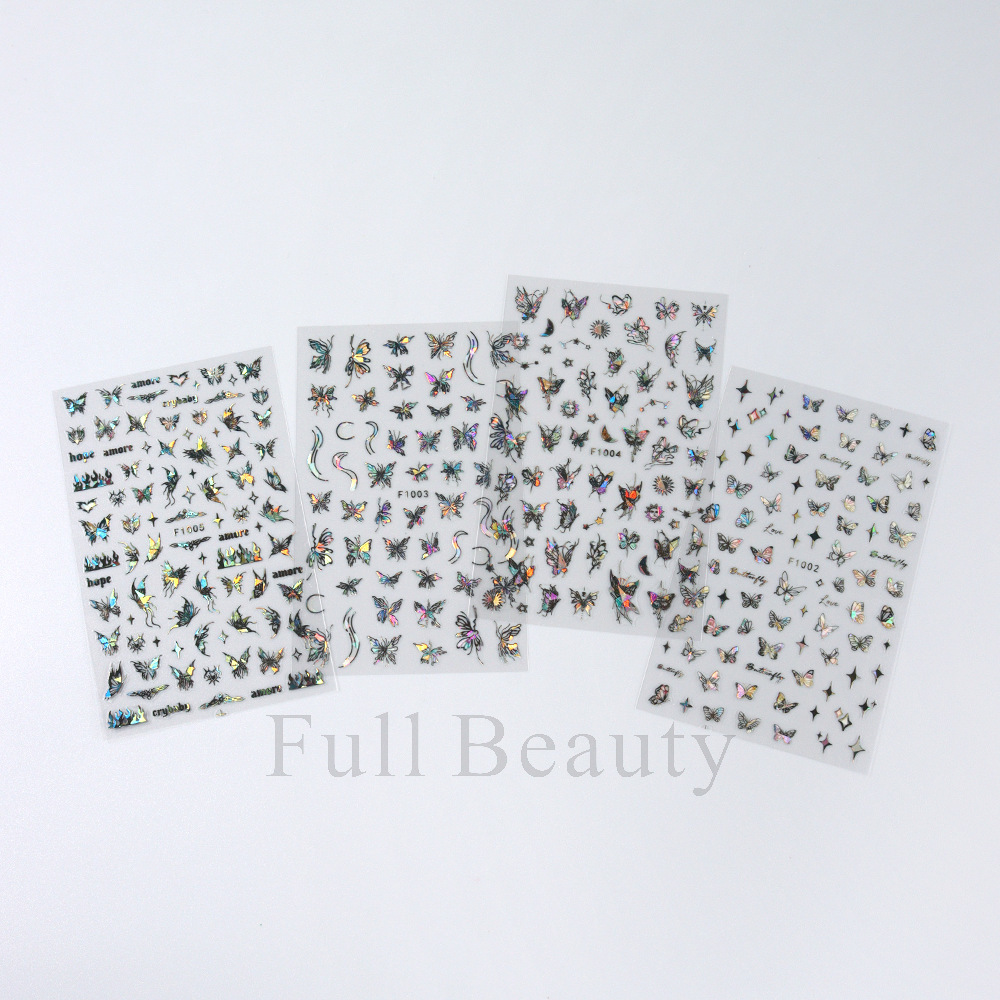 国境を越えた新型レーザーカラー蝶ネイルシール3D透かし彫り白蝶バックゴム爪貼り卸売りnail