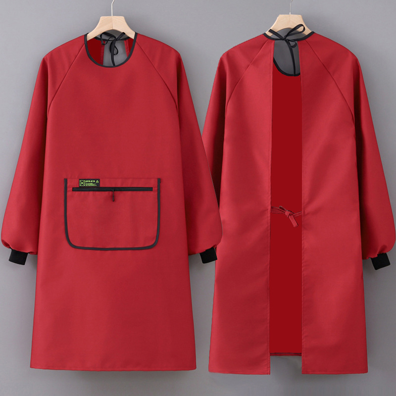 韓国版カバーファッション桃皮パイル油汚れ防止キッチン長袖エプロンレストラン成人反着作業服