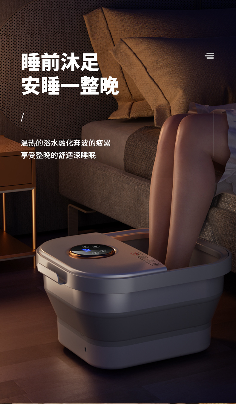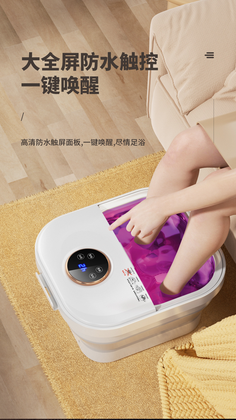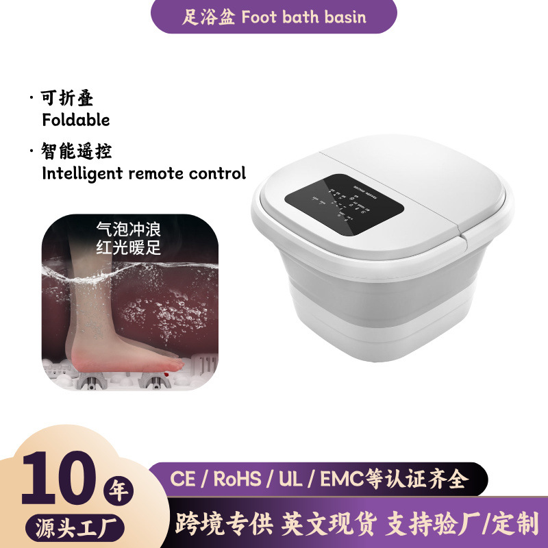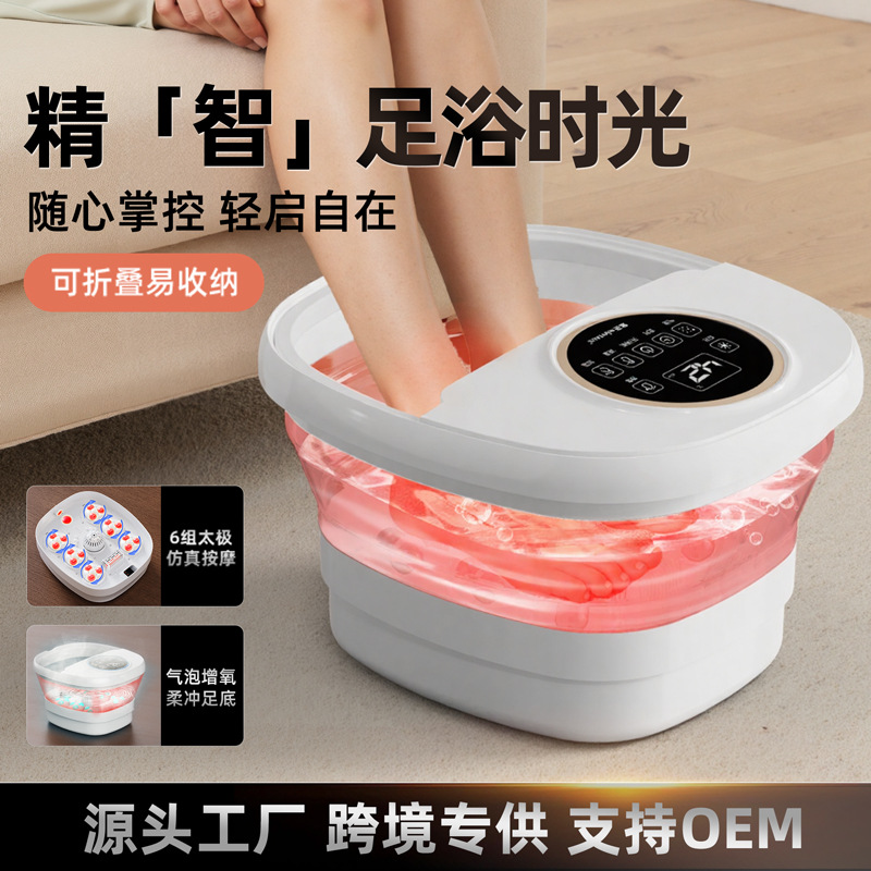 跨境可折叠足浴盆电动按摩智能加热恒温泡脚桶全自动家用洗脚盆
