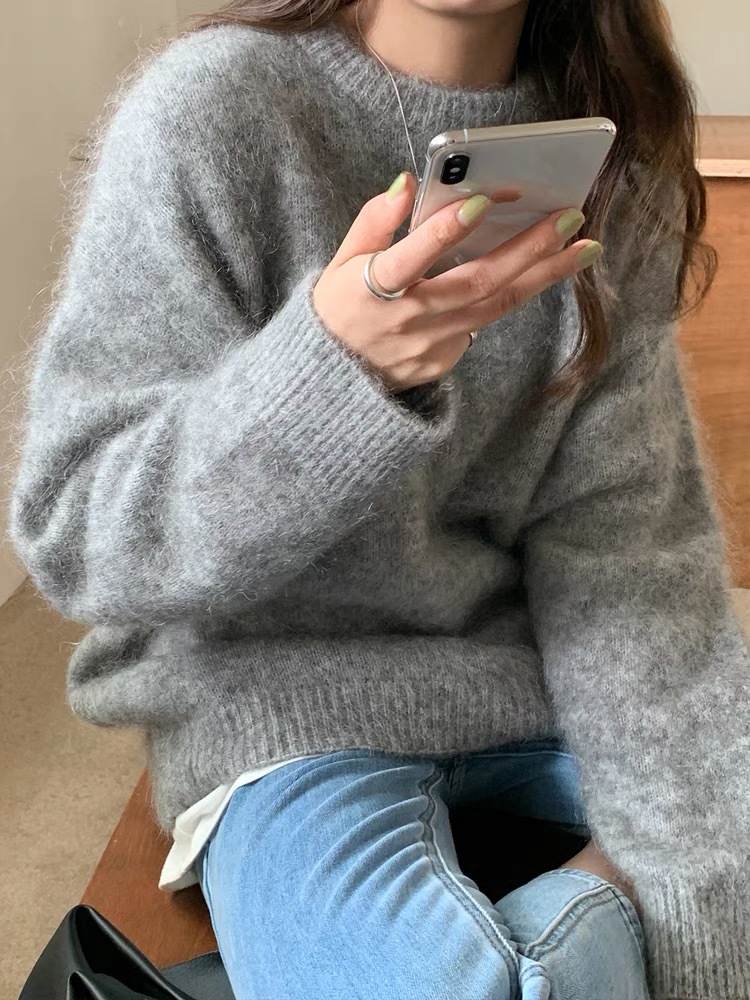 2025新款超柔特级绵羊绒韩版宽松显瘦纯色基础圆领套头针织毛衣