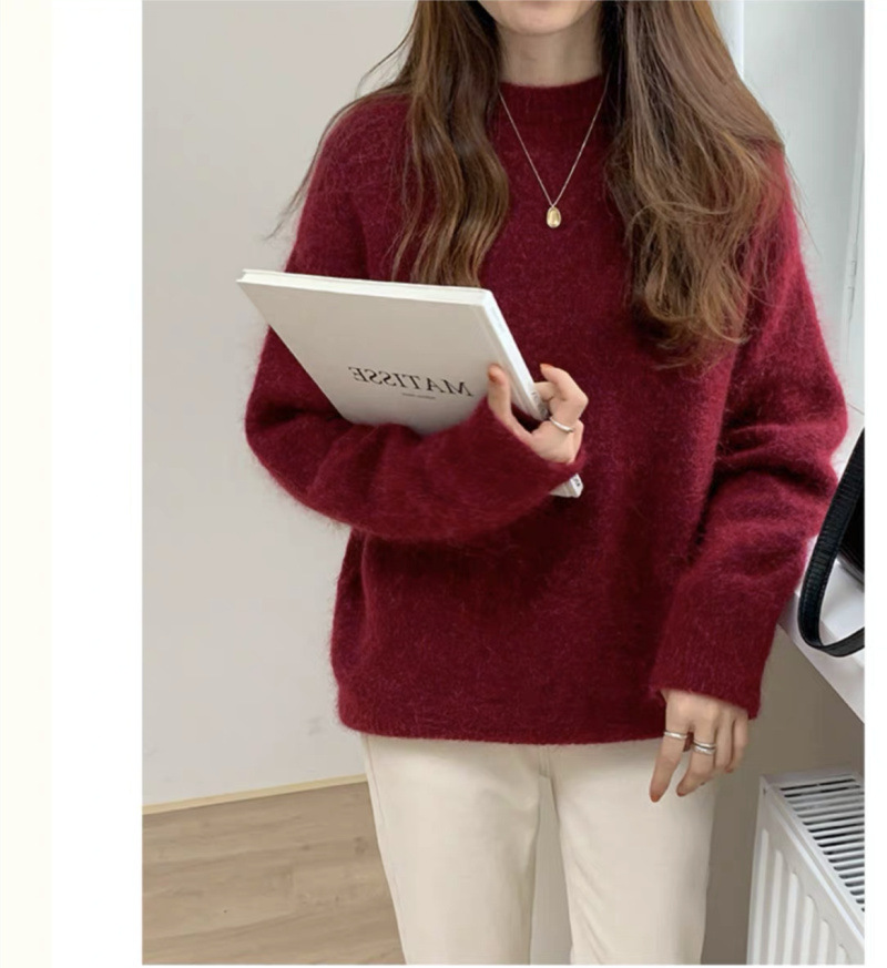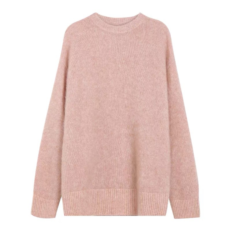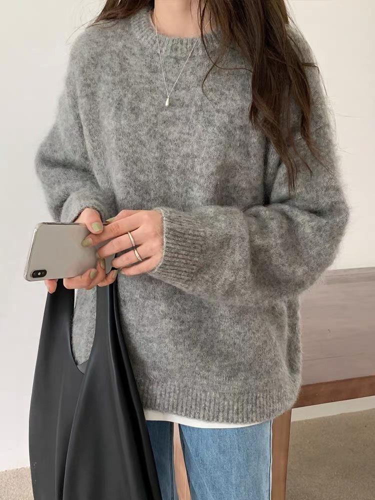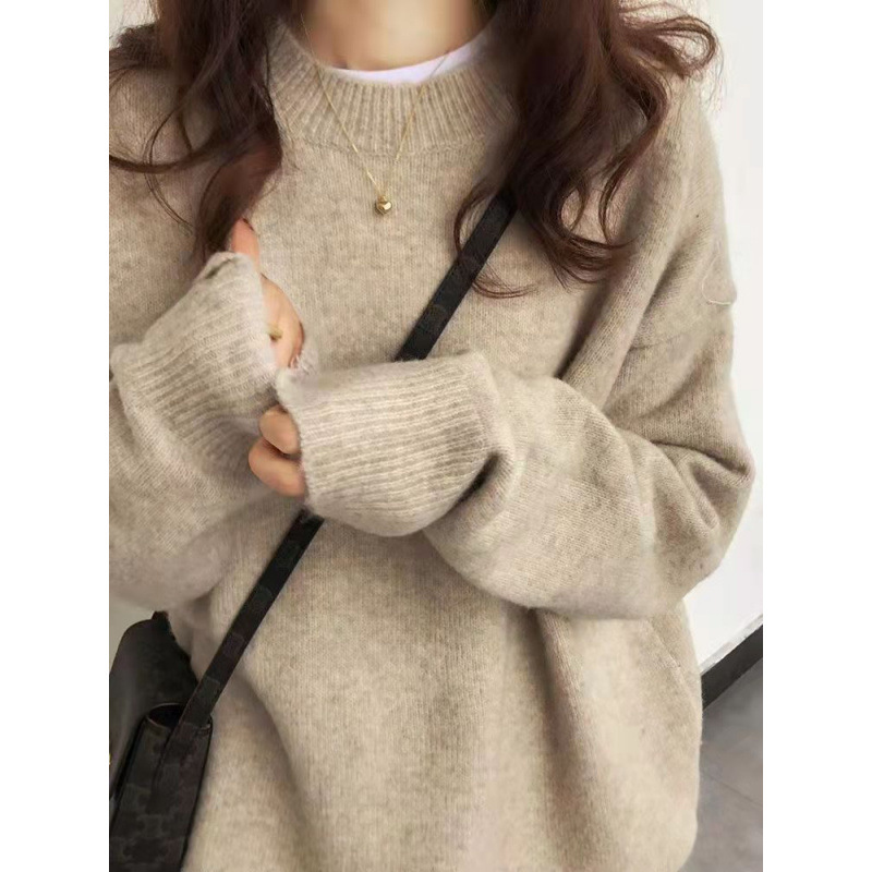 純色の柔らかいモチモチとした怠惰な風がセーターを着ている秋冬の新型のゆるい丸首の厚いニットウェアを着ている