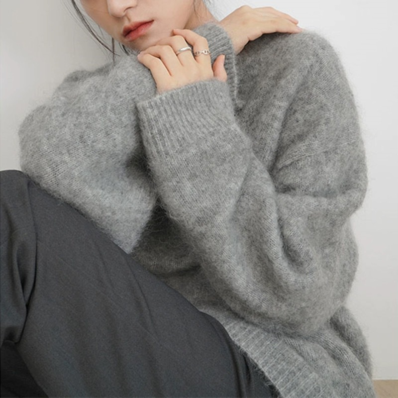 2025年新作 超柔らか特級羊毛 韓国風 ゆったり着痩せ効果 無地 ベーシック 丸首 プルオーバー ニットセーター