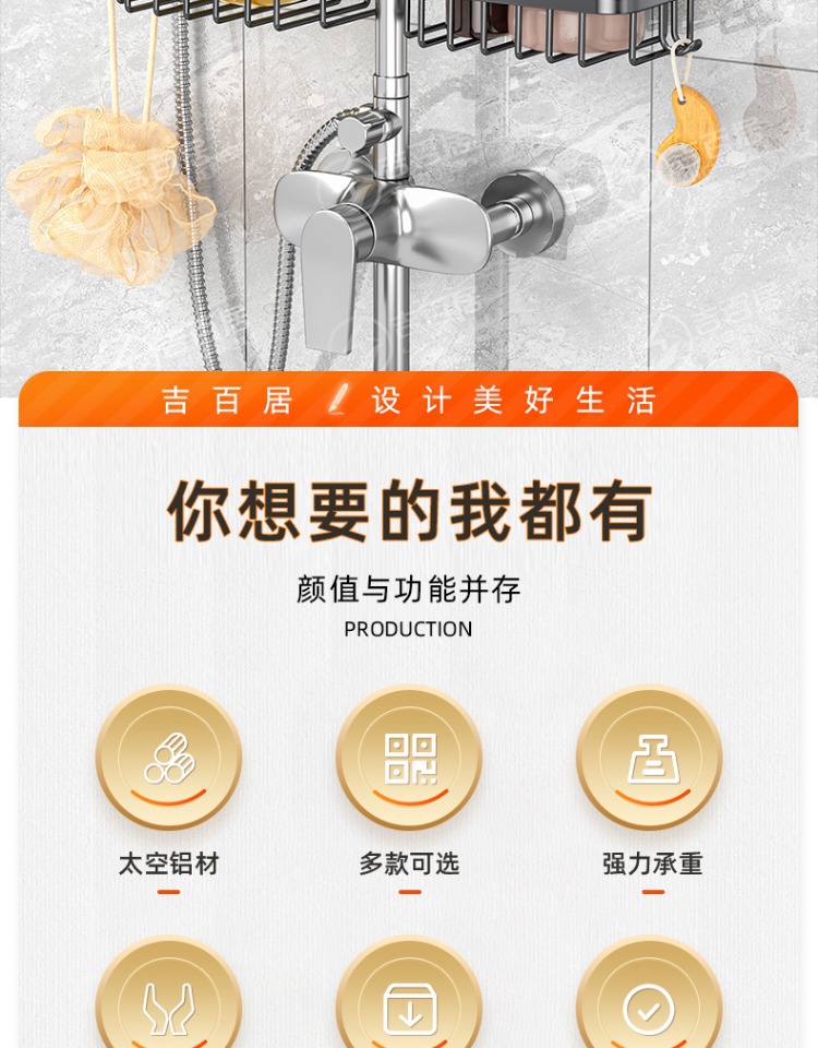 浴室棚トイレ穴なしシャワーシャワーバスケット入浴用品シャンプー入浴剤収納棚