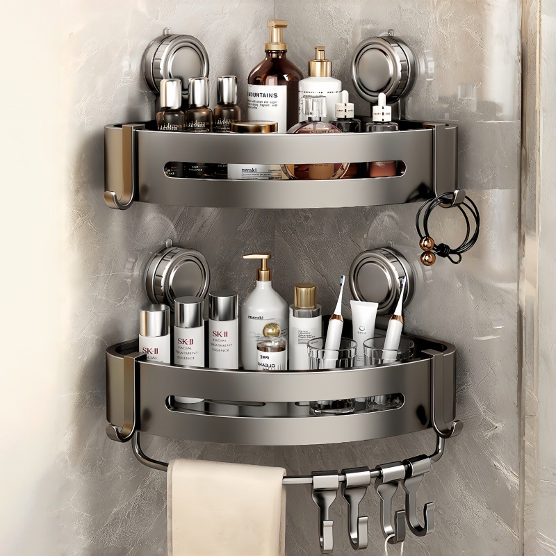 メーカーは浴室に穴を開けない多層収納棚を提供しています。