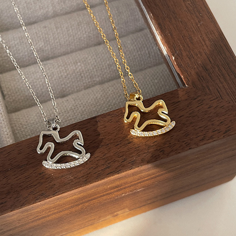 赤い本の童話の小さい木馬のネックレスの女性の秋冬のかわいい文芸のアイデアの鎖の小さい子供の趣味の項はぶら下がっています。