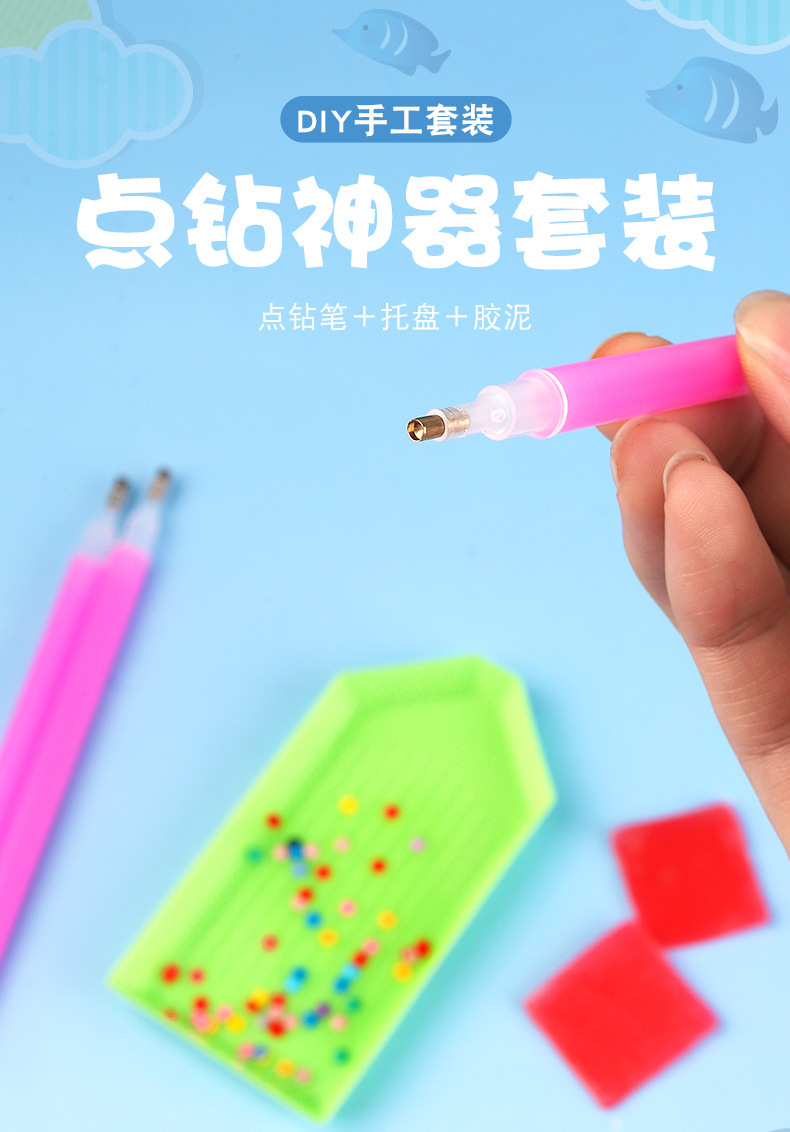 子供の手作りDIYダイヤモンド画材料工点ドリルペントレイ点ドリルペーストセット点ドリルペンツールセット
