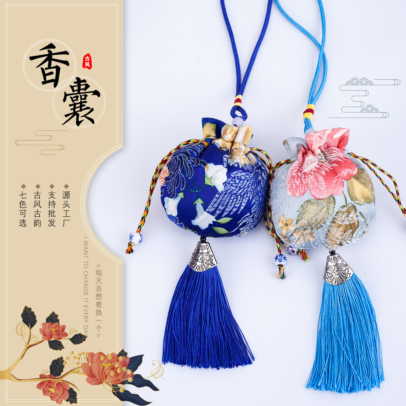 古風香嚢金糸流蘇香袋空袋香包首自動車携帯ストラップ福袋錦嚢平安符