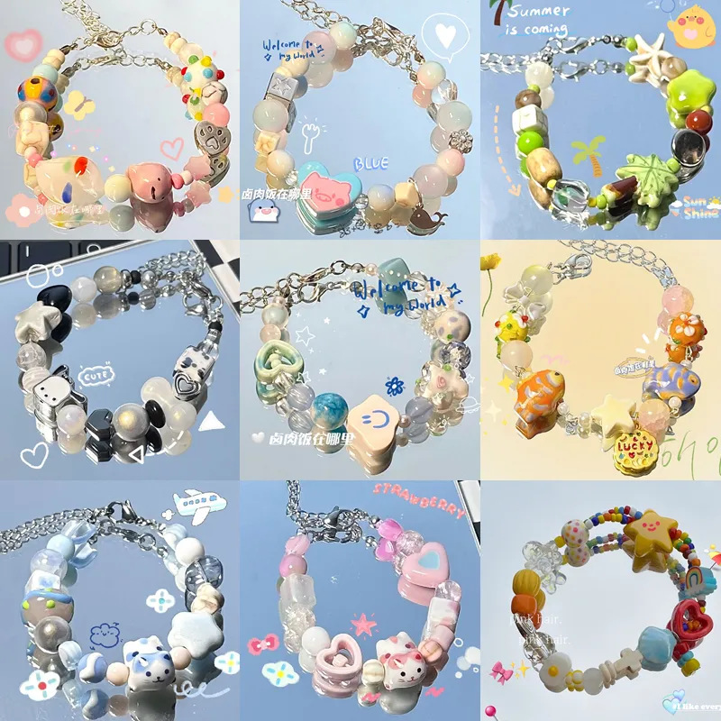 【クリーム味晴れ】insブレスレット小衆可愛い女子学生漫画手作りカップルビーズネックレスプレゼント