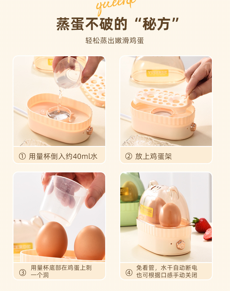 粤尔德直供 小型蒸蛋器家用温泉蛋煮蛋机早餐神器迷你煮蛋器 代发