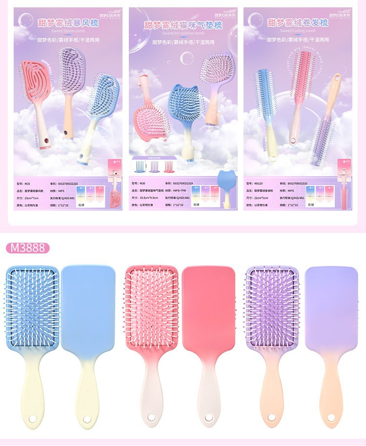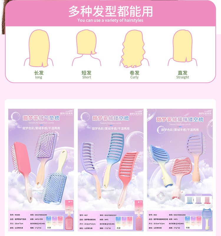 颜色 猫咪气垫梳,大板气垫梳,椭圆气垫梳,镂空梳,大板按摩梳,卷发梳,椭圆按摩梳,猫咪镂空梳