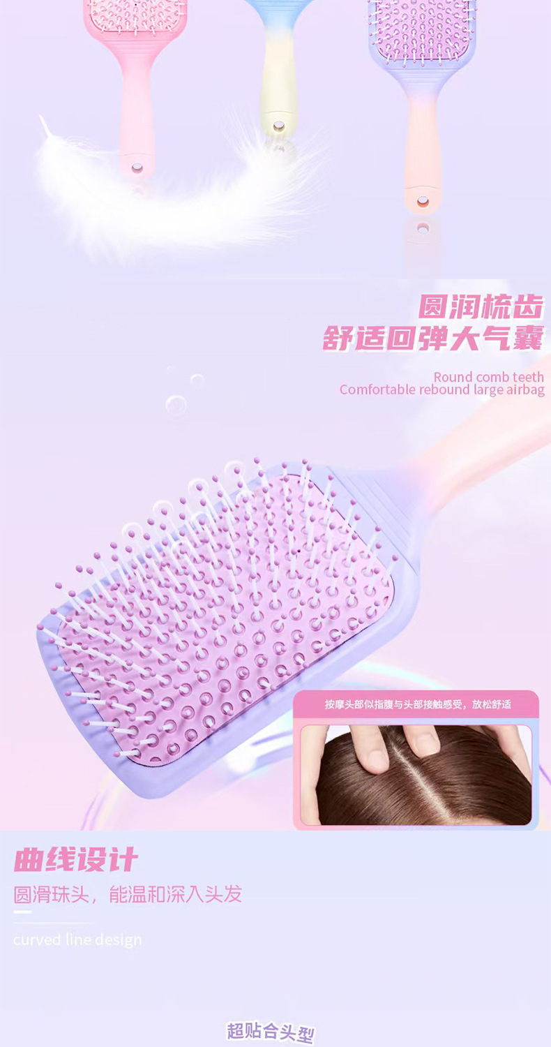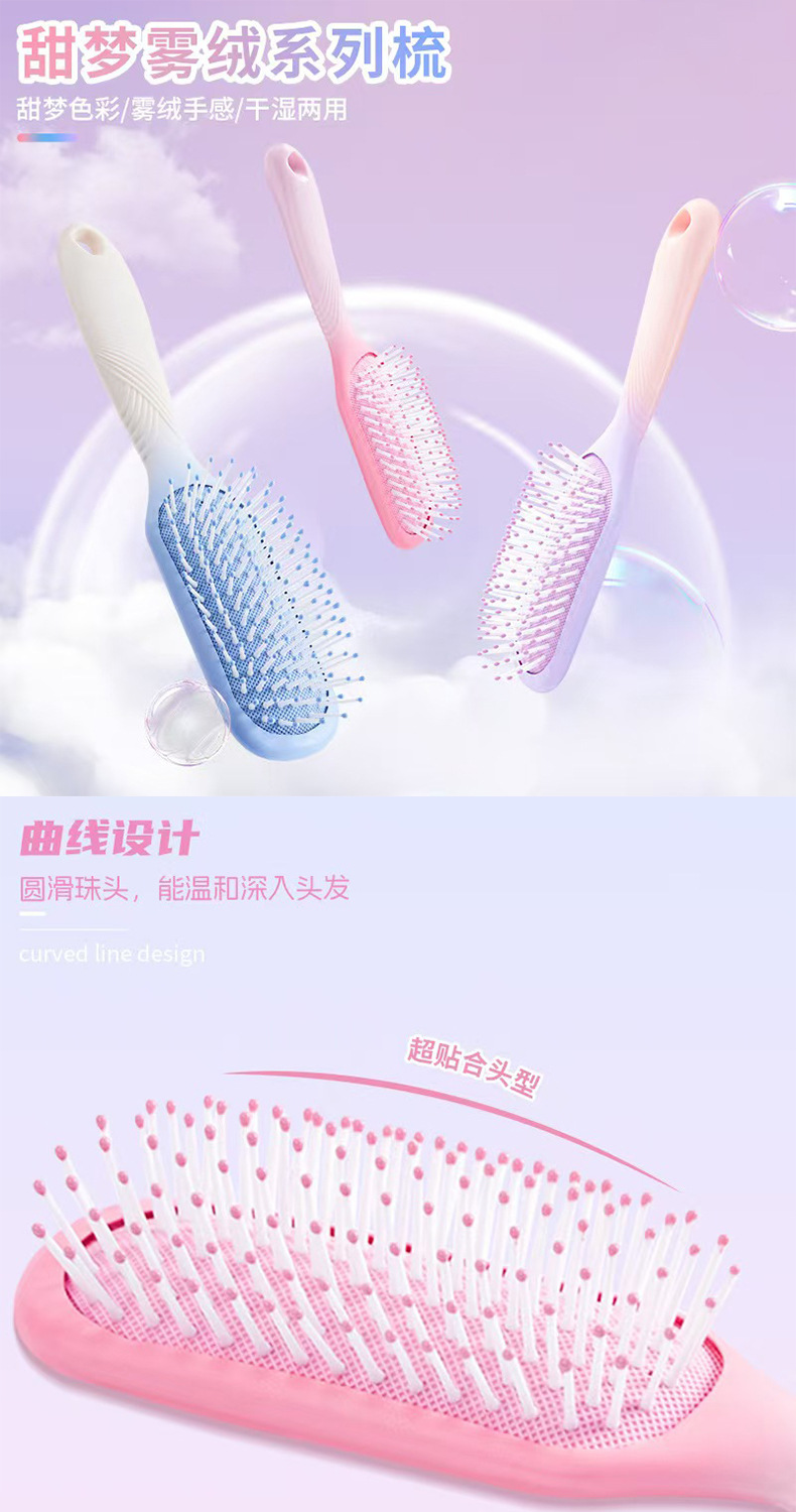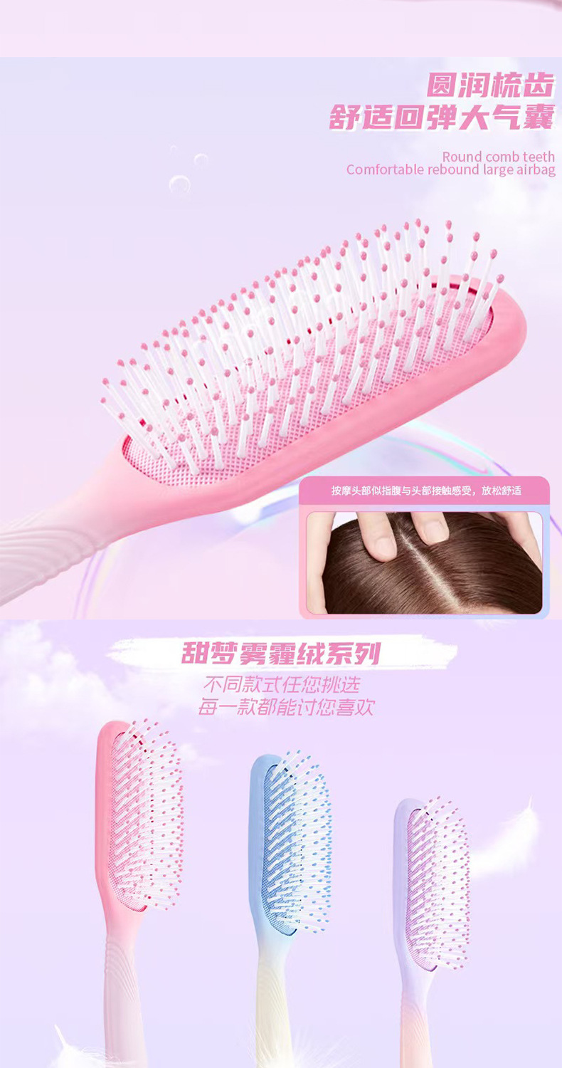 甜梦雾绒系列气垫梳女学生便携按摩梳镂空梳干湿两用少女梦幻梳子