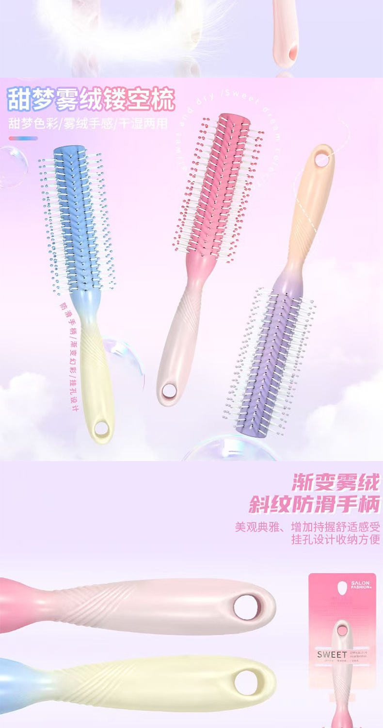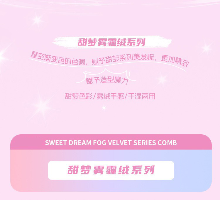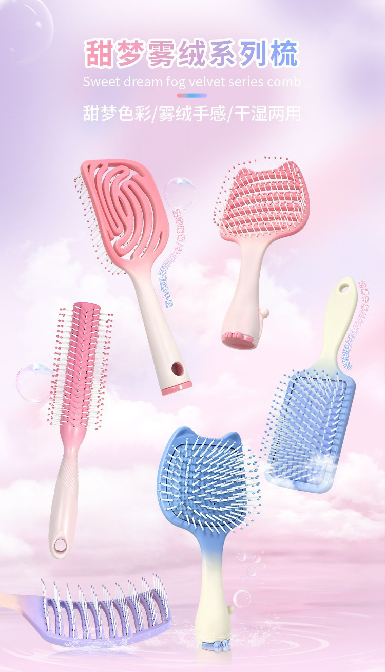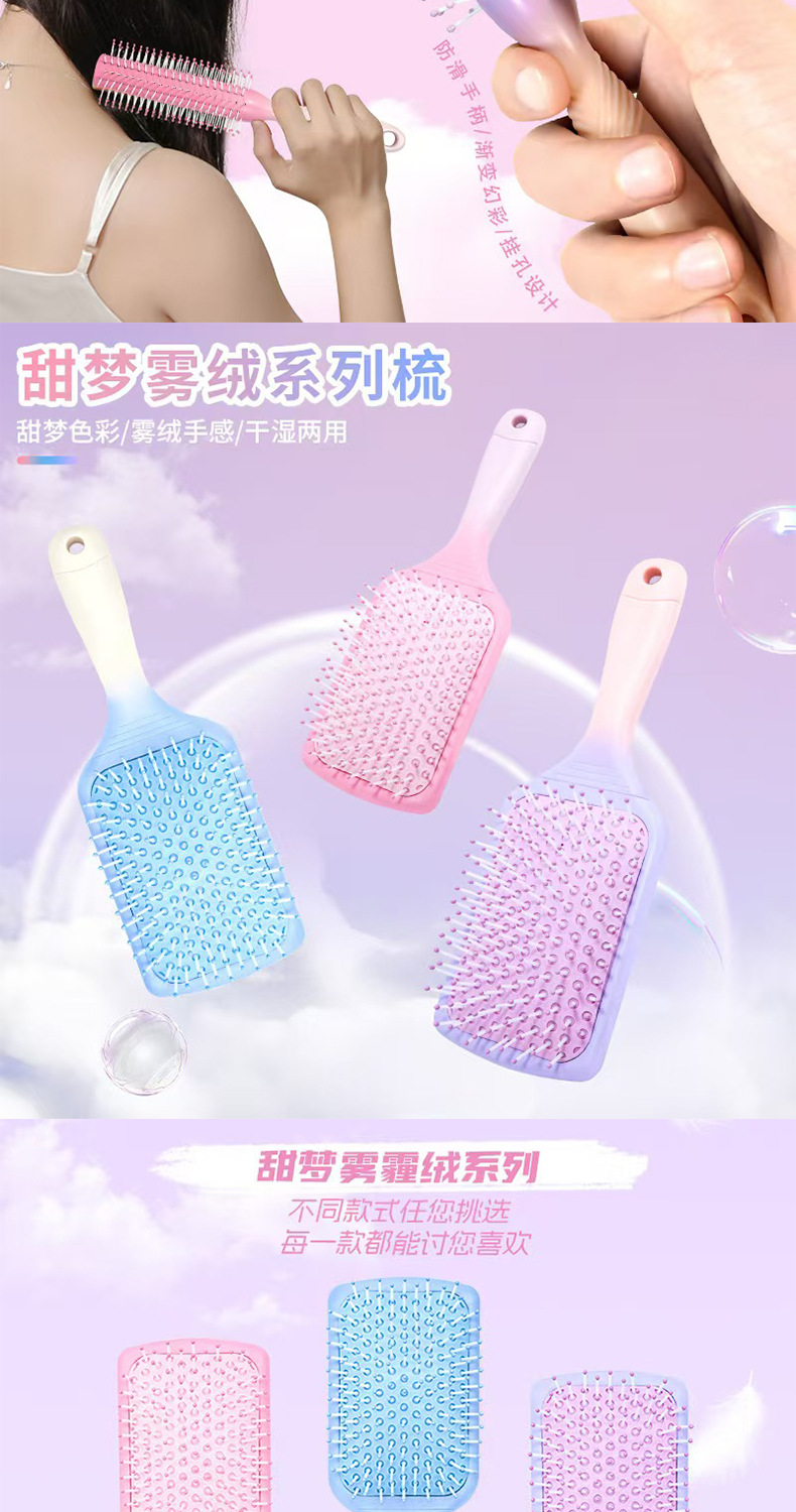 甜梦雾绒系列气垫梳女学生便携按摩梳镂空梳干湿两用少女梦幻梳子