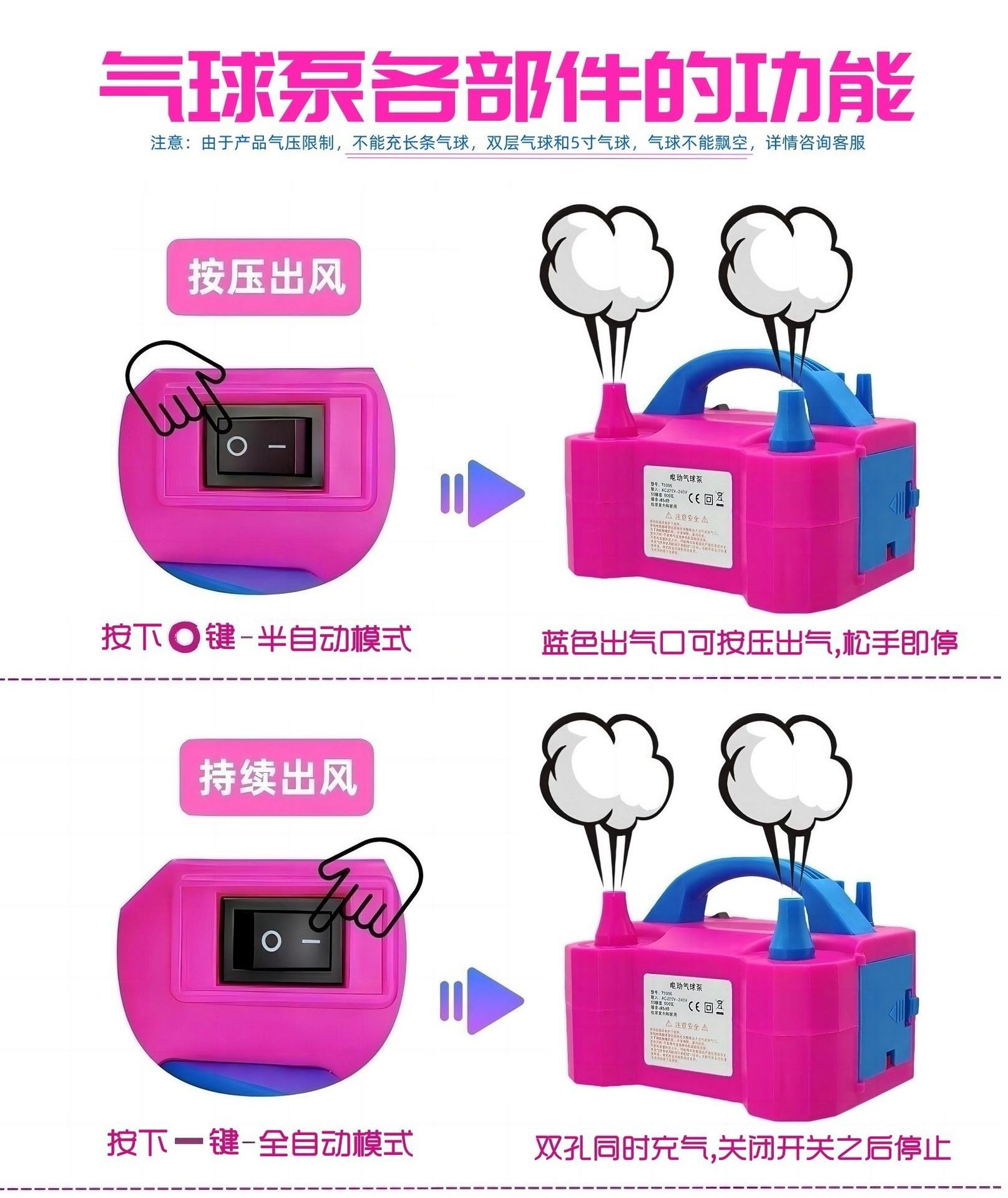 サイズ 二穴電動エアポンプ,長条風船電動エアポンプ