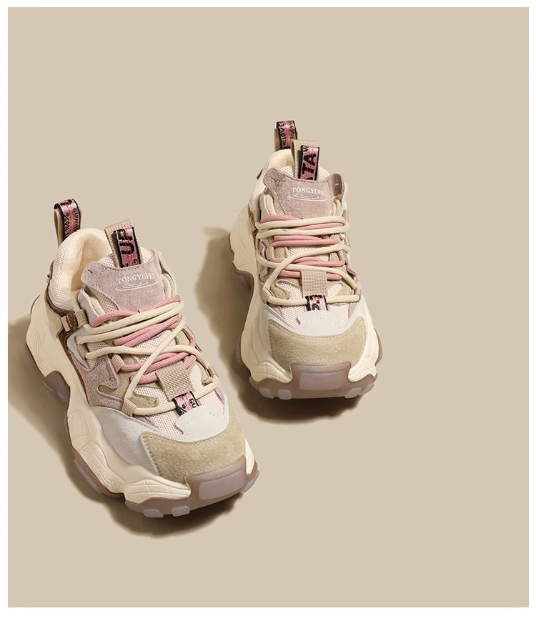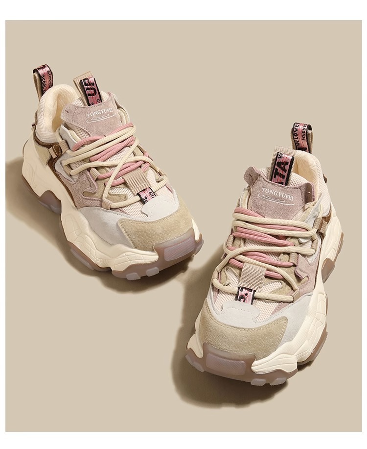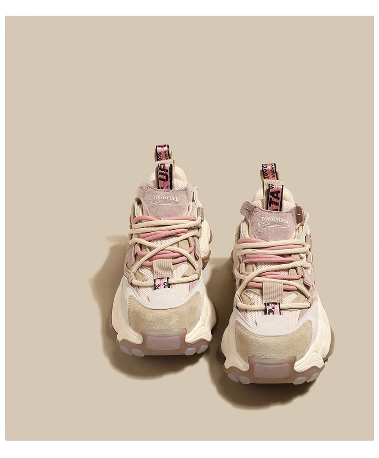 韓国版のニッチな軽量プラットフォーム厚底ダッドシューズ女性用 2025 新しいランニングレースアップメッシュスポーツカジュアルシューズ女性用