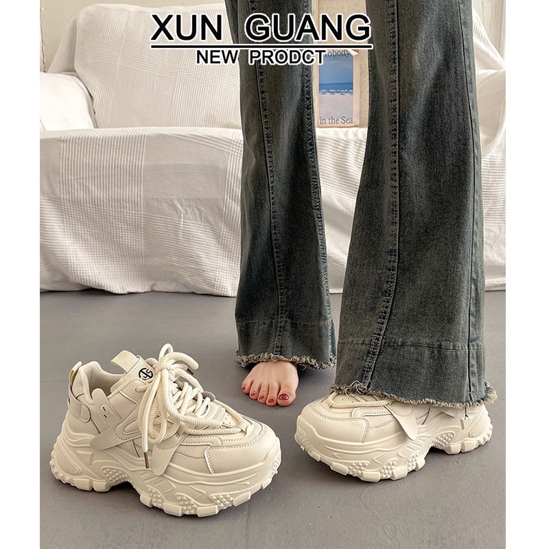 本革厚底ダッドシューズ女性用 2025 春の新作小柄な女性の靴多用途カジュアルスポーツシューズホワイト