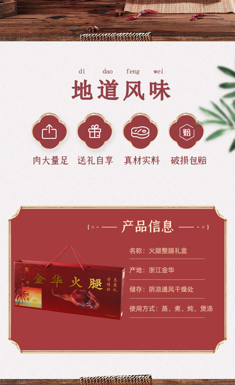 金華ハムメーカー直販ハム整脚礼箱4-8斤浙江特産年末賞会社プレゼント