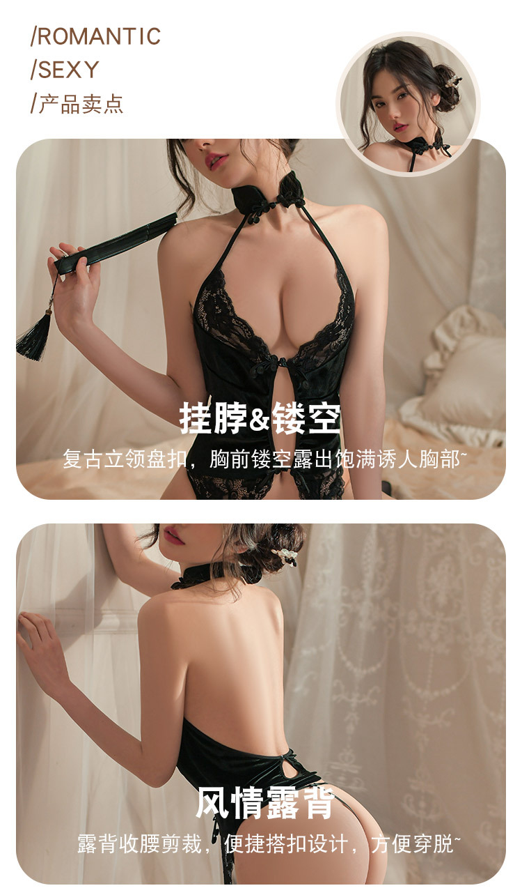 セクシーな下着のチャイナドレスのセクシーな熱い制服は卸売りセットのレトロな透かし彫りの激情のレースを誘惑します。