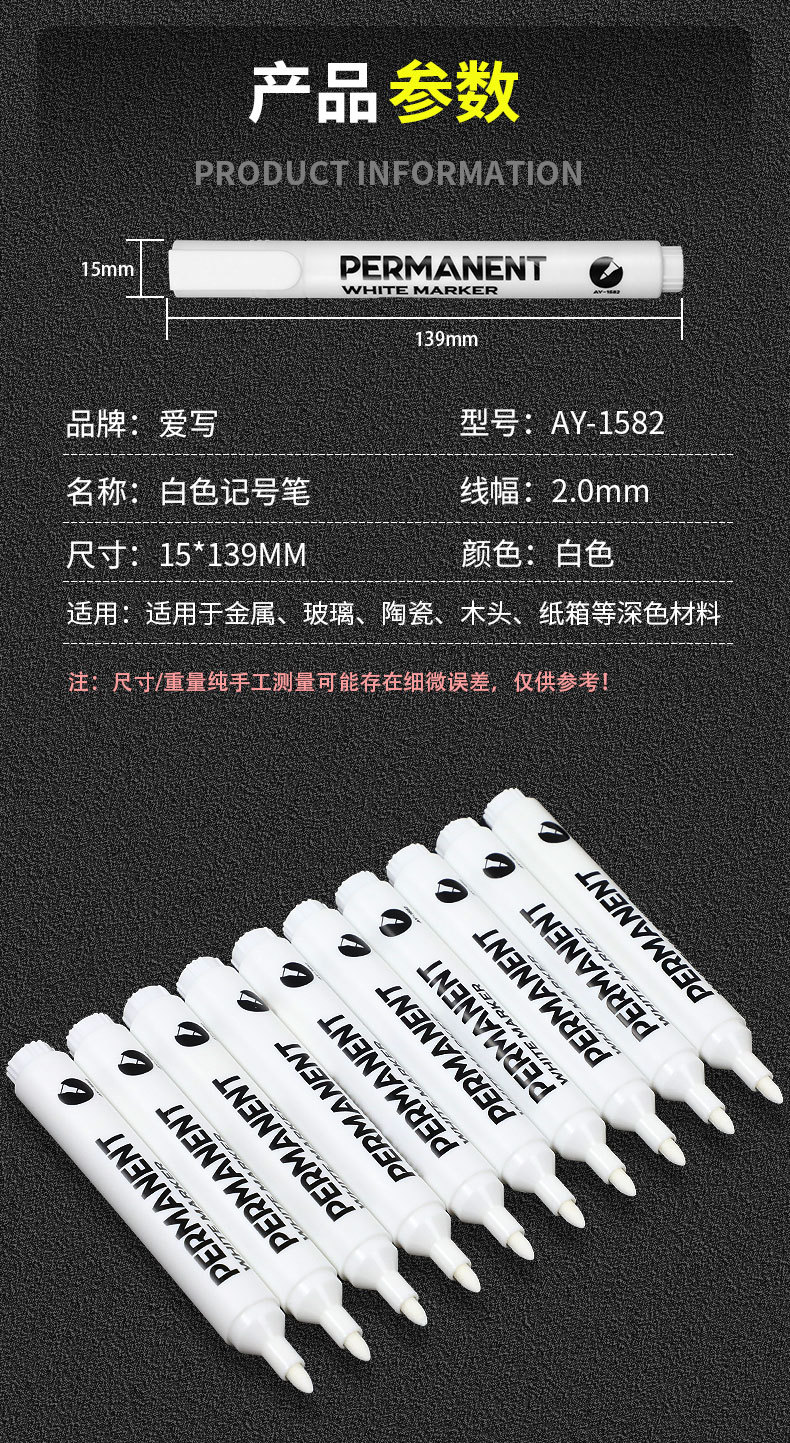 Aiye ホワイトマーカーペンは色あせせず、厚みのあるペイントペンインク速乾性防水エクスプレスボールド工業用マーカーペンです。