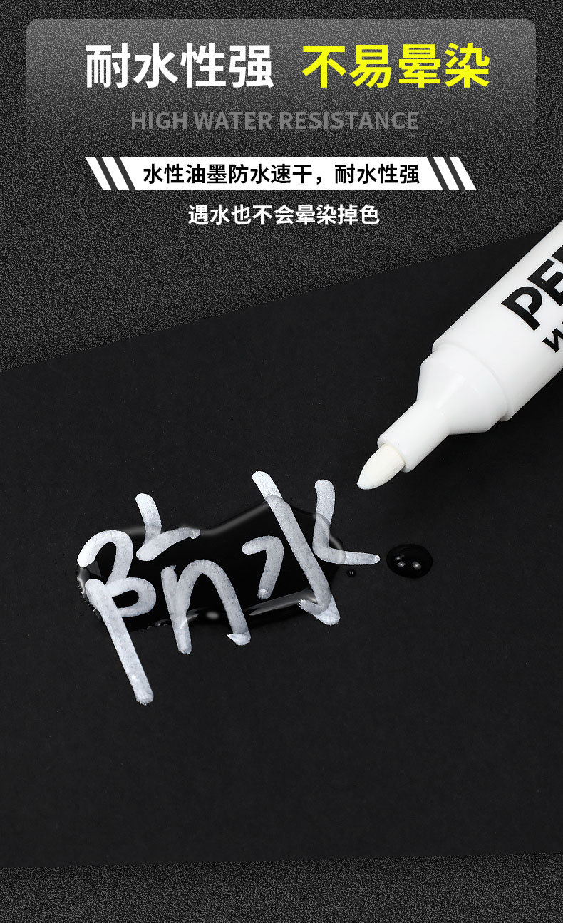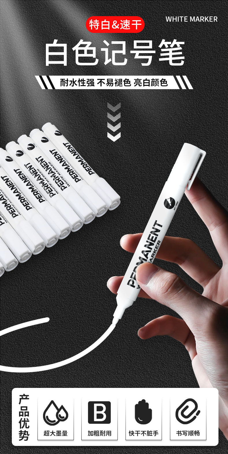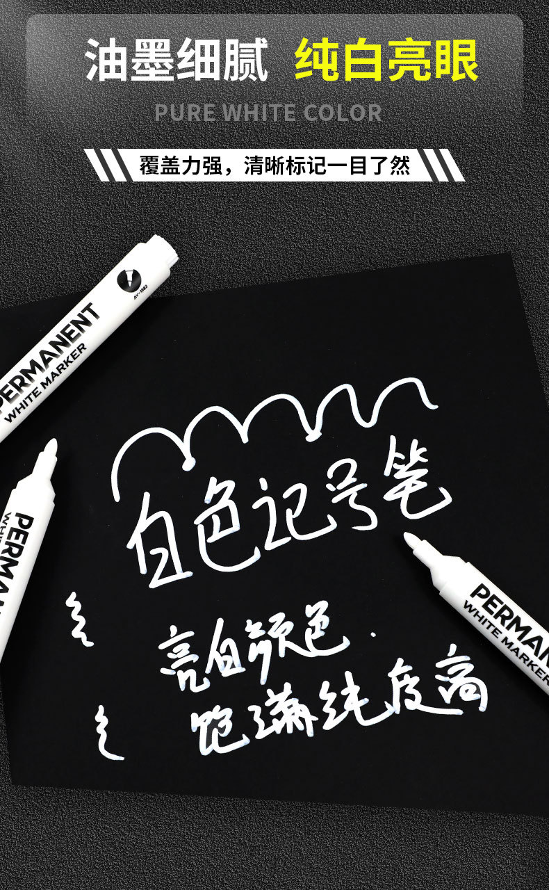 ホワイト高光沢アクリルペン速乾性防水非退色マーカーペン強力なカバー力学生マーキング落書きマーカーペン