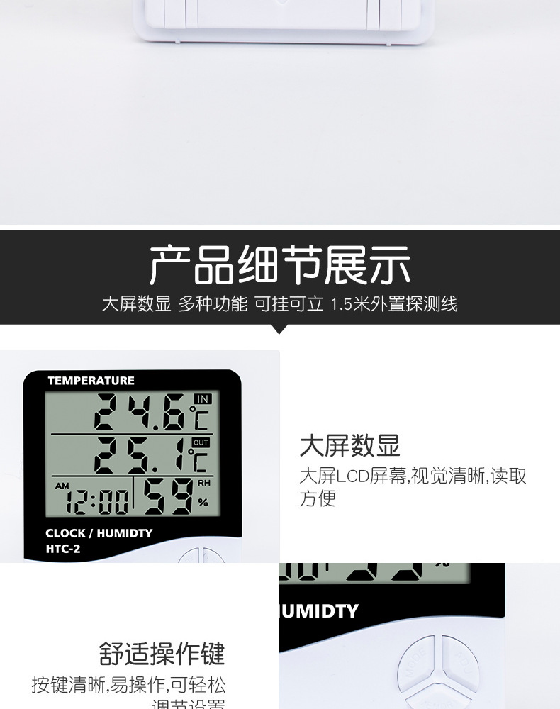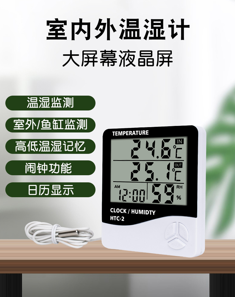 HTC-2温度计大屏幕数显家用湿度计室内室外双温检测电子温湿度计