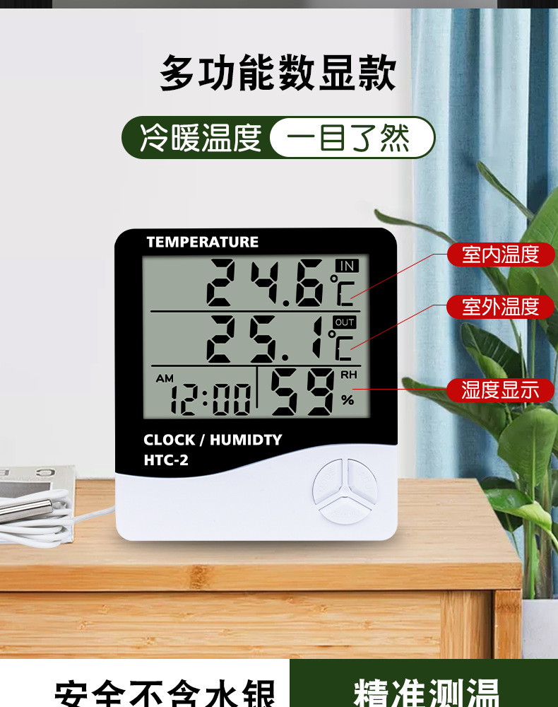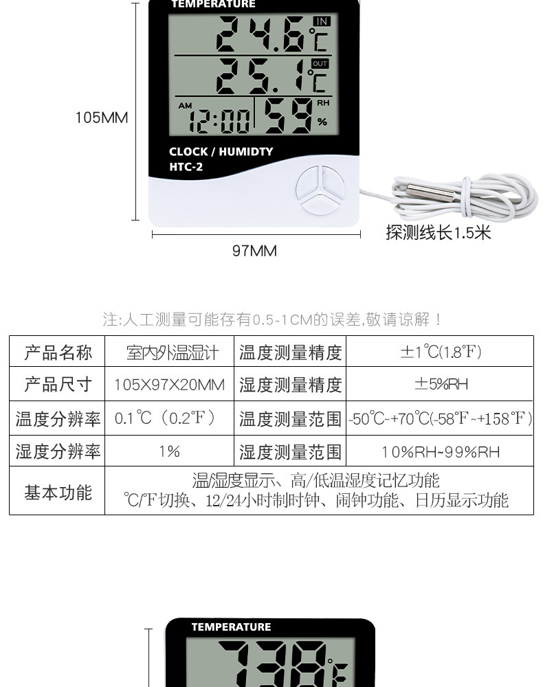 HTC-1/HTC-2湿度計創意家庭用二重温度表示帯探知電子温度計
