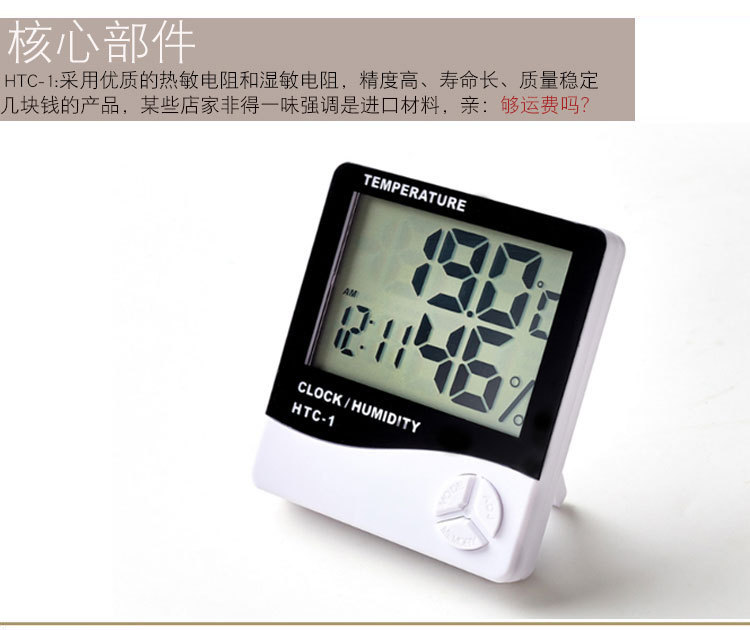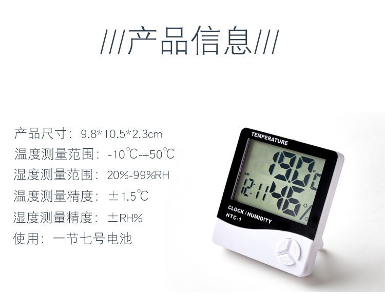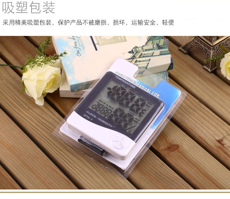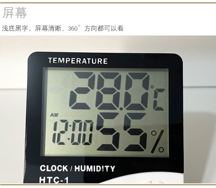 HTC-1温度湿度計創意大画面デジタル表示室内家庭用電子目覚まし時計温度計クロスボーダーアマゾン