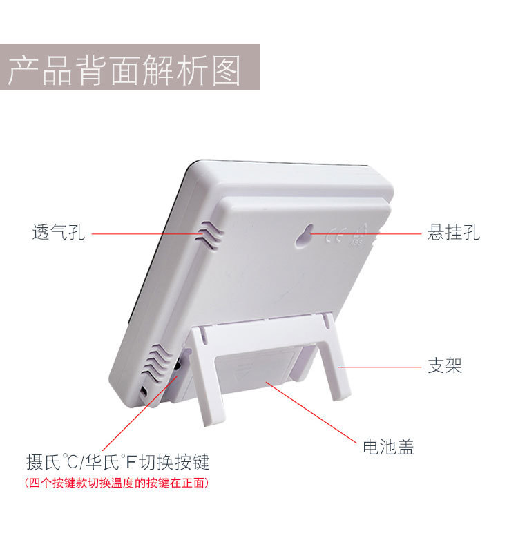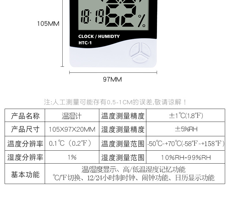 HTC-1室内电子温度计带闹钟家用婴儿房壁挂大屏数显温度湿度计