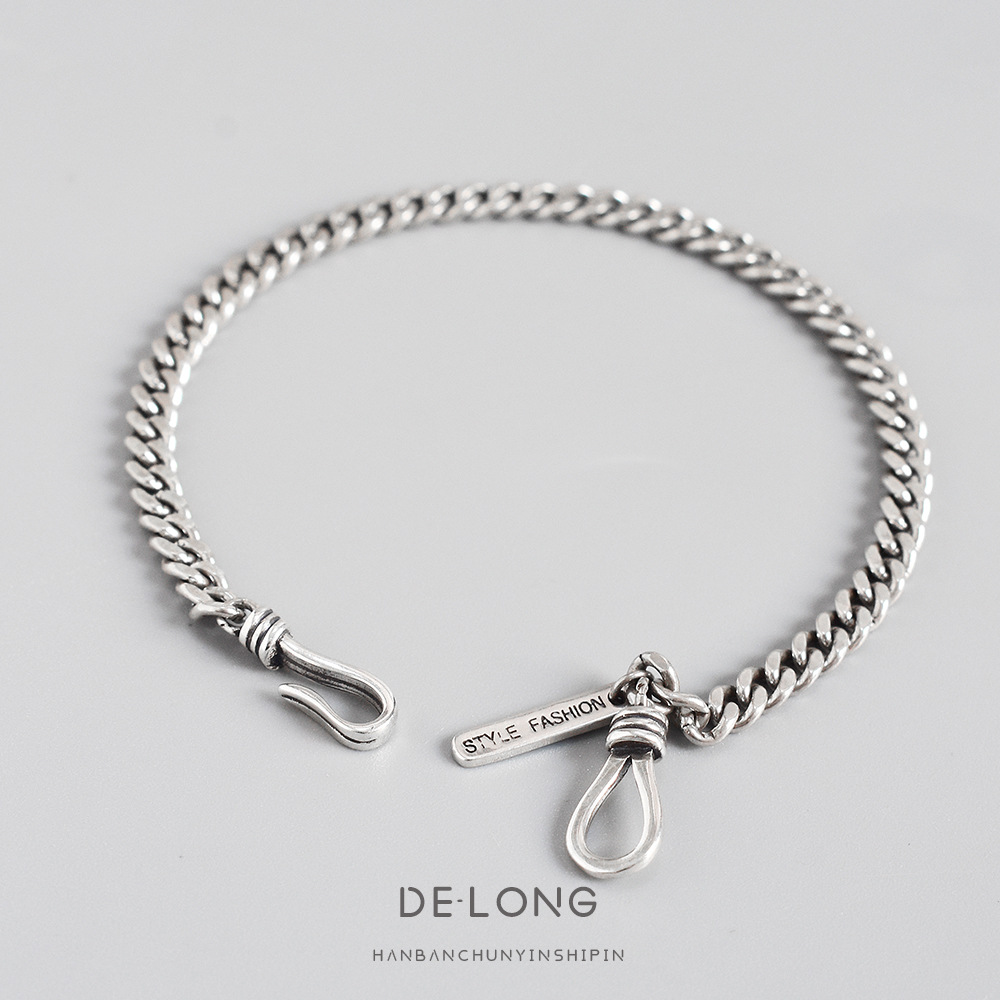 s925 スターリングシルバーレトロパーソナライズされたサイドチェーンブレスレットトレンディな多用途スクエアブレスレット気質ニッチジュエリー女性用