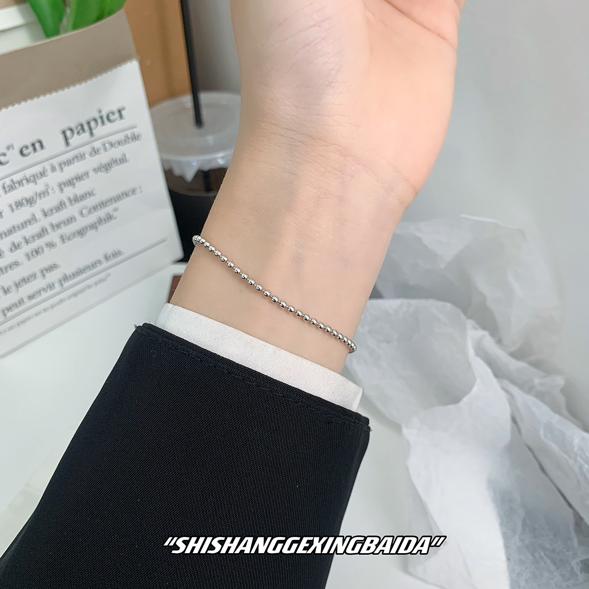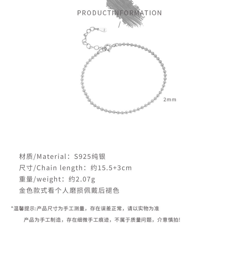 s925 スターリングシルバーシンプルな 2 ミリメートルビーズブレスレット気質ニッチジュエリー多用途ラウンドビーズブレスレットファッションアクセサリー女性のための
