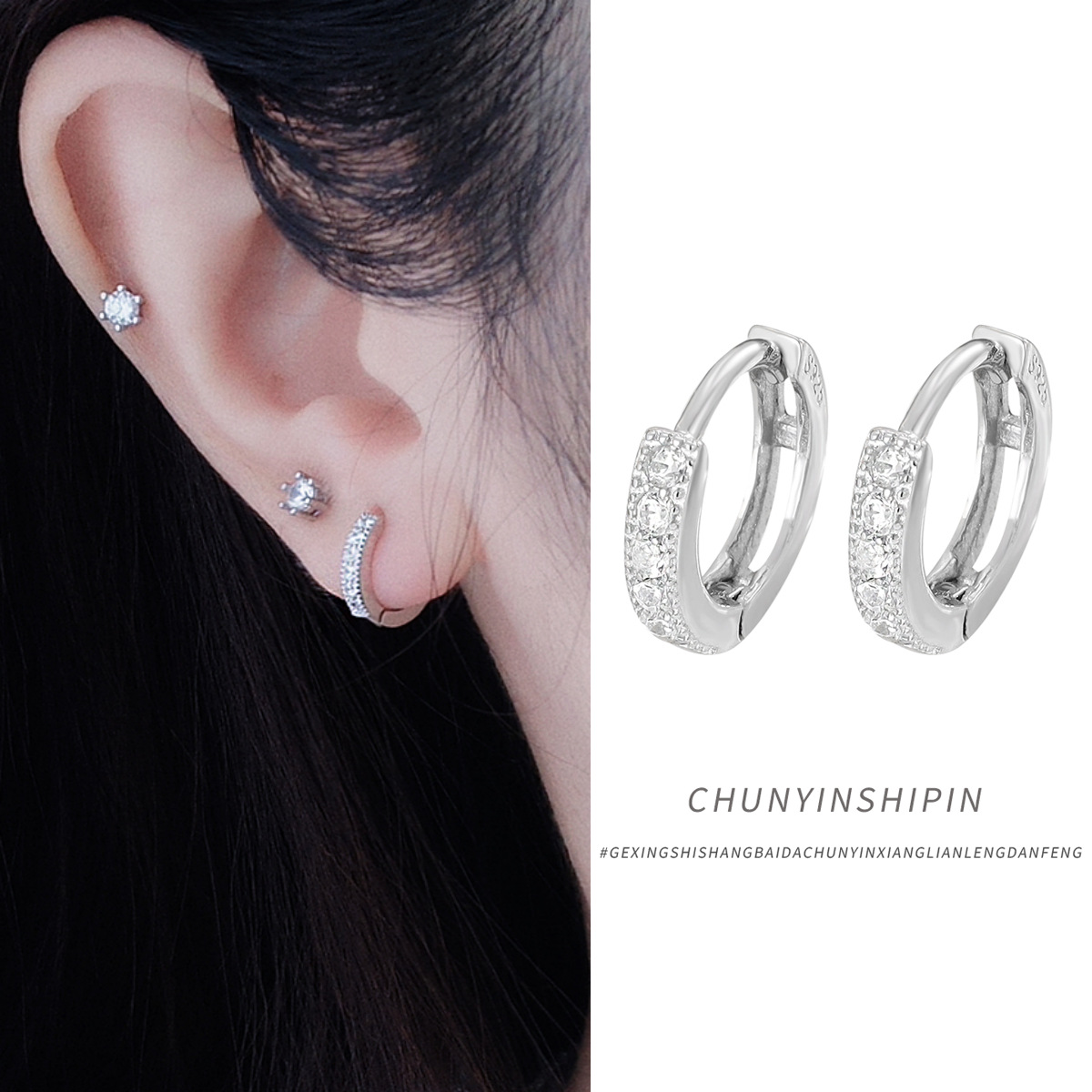 S925純銀個性シンプルなリングピアス小衆気質アクセサリー高級感小玉イヤリング女性