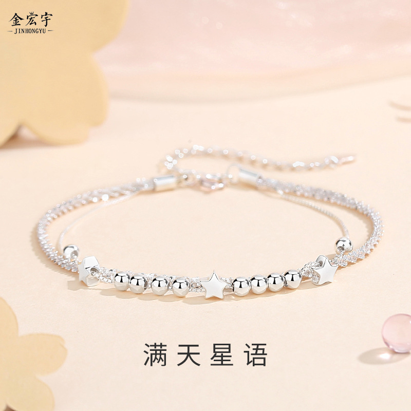 金宏宇二重満天星ブレスレット女純銀925韓国版軽豪華波がきらきらと輝いています。