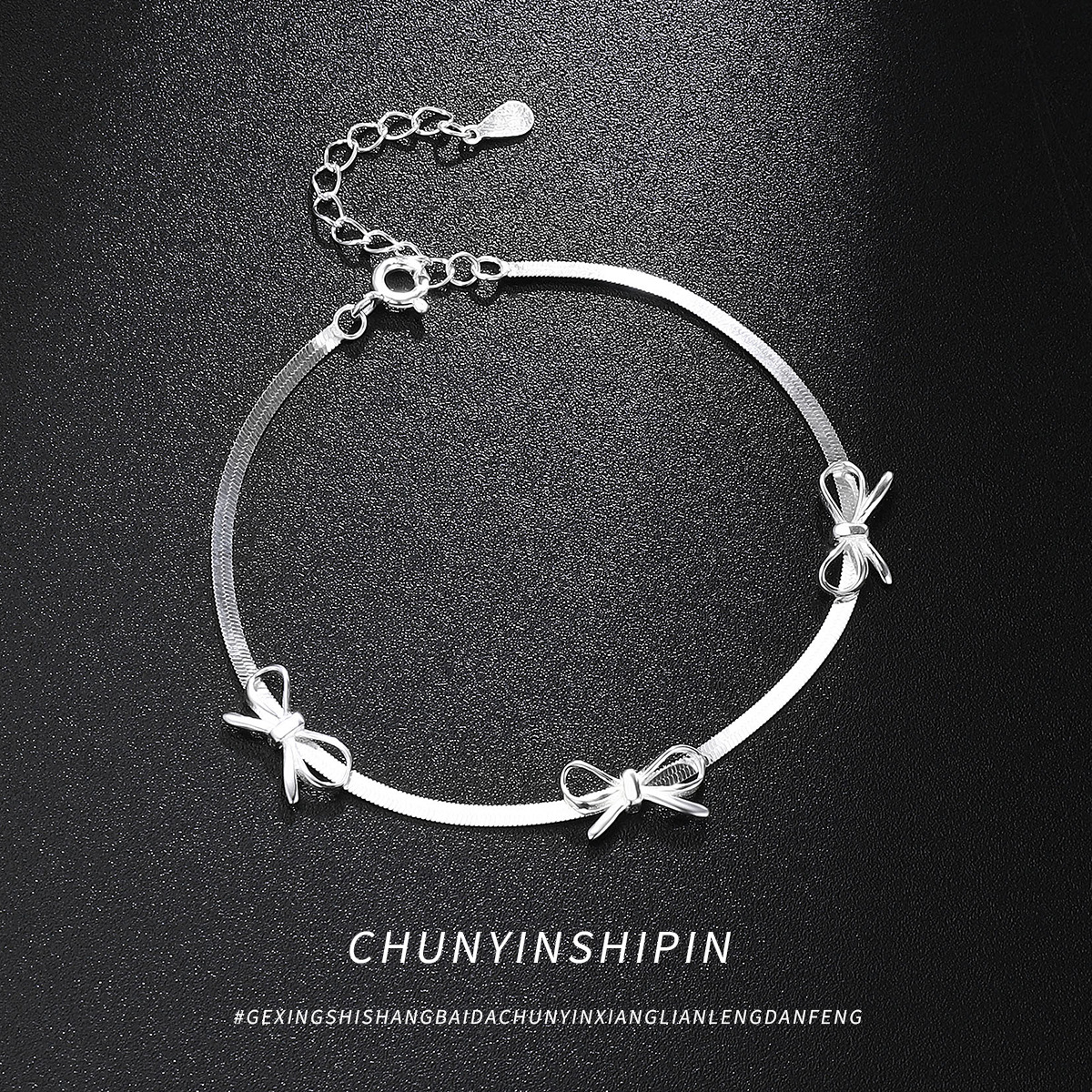 S 925純銀百合蝶結び蛇骨ブレスレット気質小衆アクセサリー個性シンプル蝶結び手飾り女