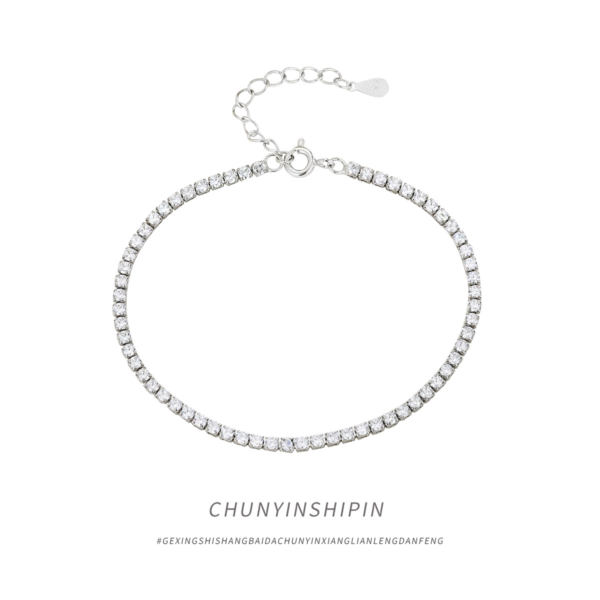 S 925純銀の軽豪華な百合2mmフラッシュドリルチェーンのブレスレットの気質のアクセサリーの単列のドリルの装飾の個性の装飾の女性