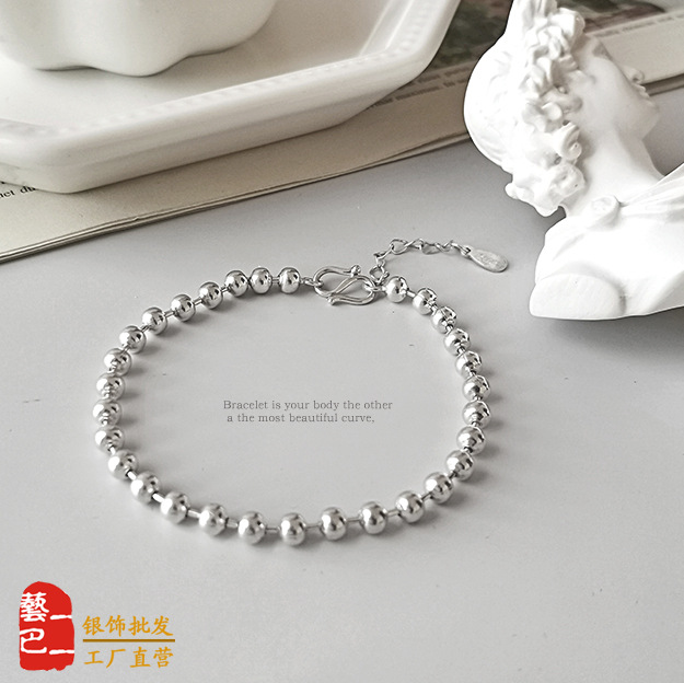 s999純銀ブレスレット(数粒の銀粒入り)女性用2025年新作レトロクリエイティブニッチインスタ映えギフトシルバーアクセサリー
