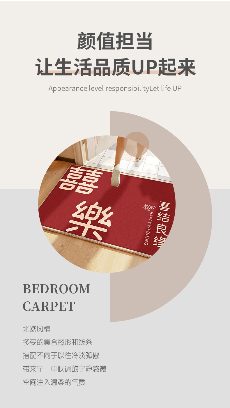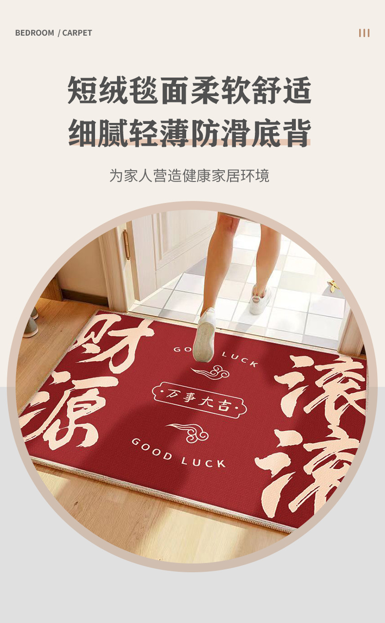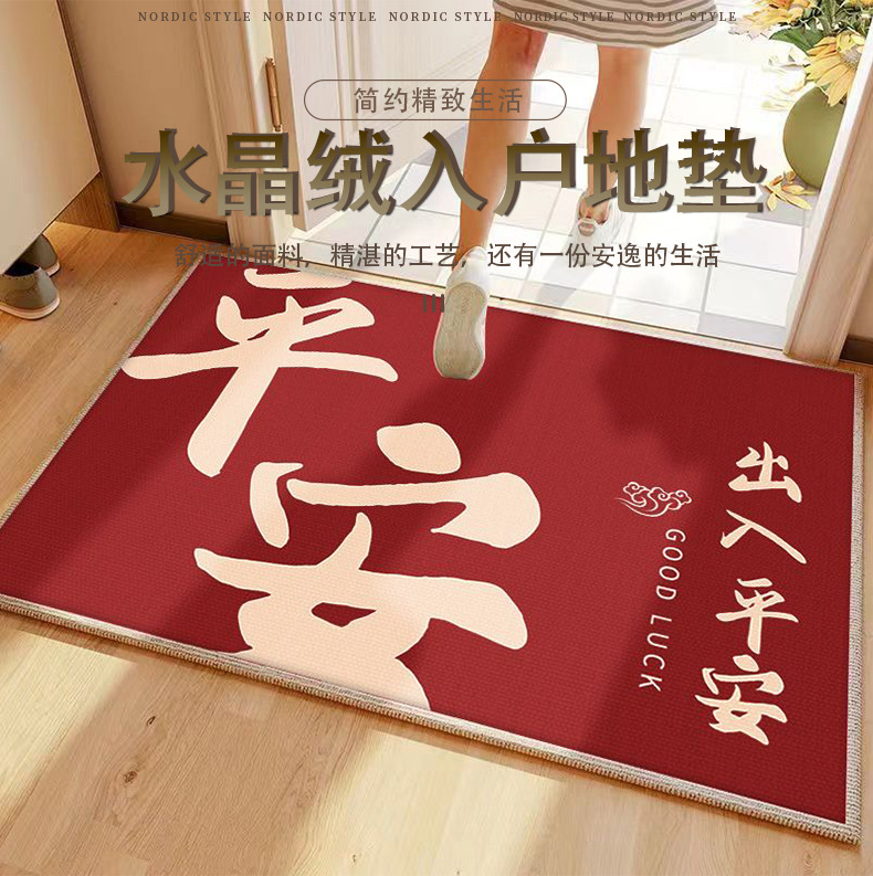 红色入户门地垫耐脏好打理水晶绒地垫玄关换鞋区脚踏垫爆款进门垫