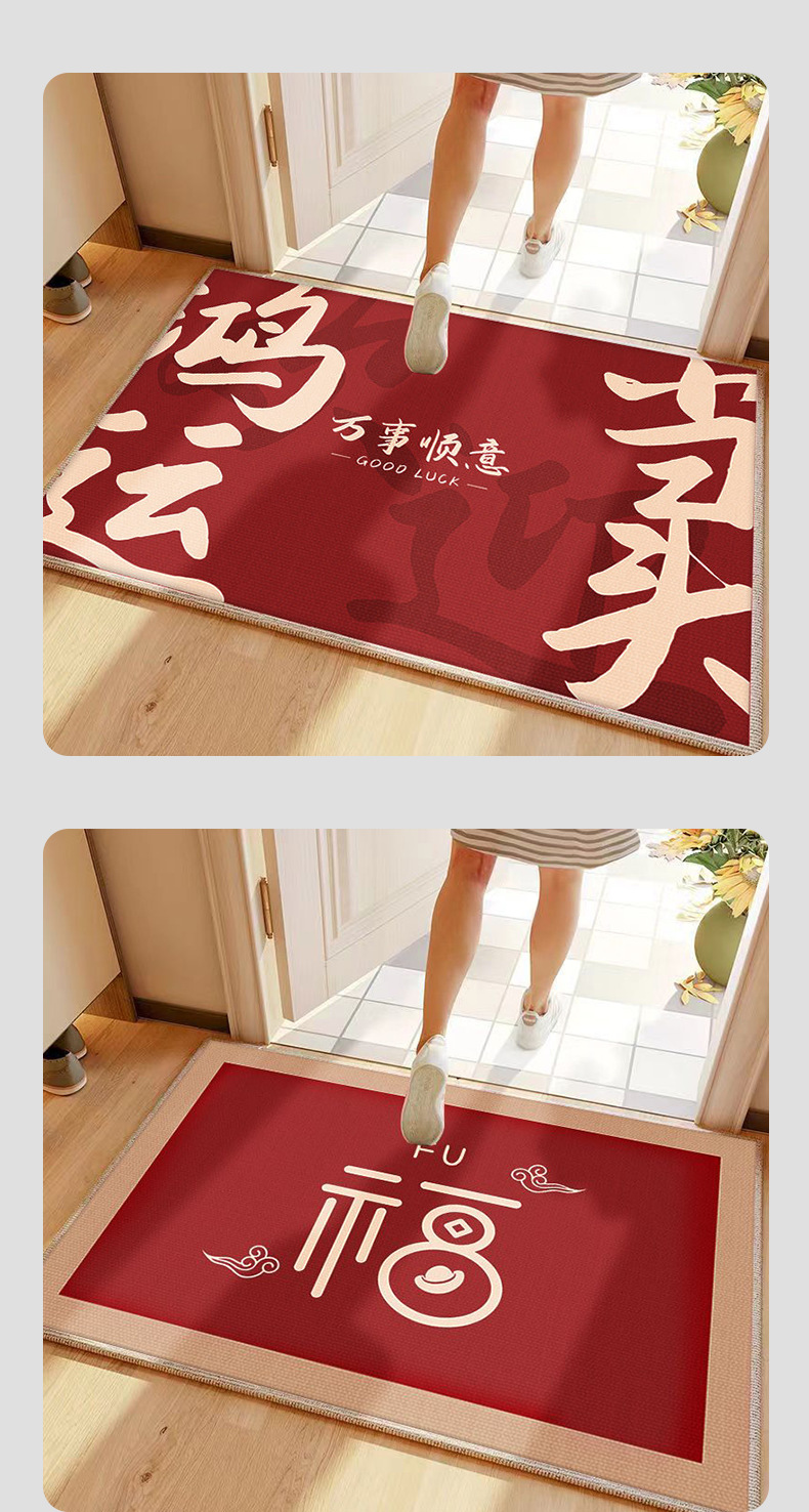 新年喜庆入户门地垫家用进门换鞋区耐脏耐磨脚垫pvc丝圈地垫批发