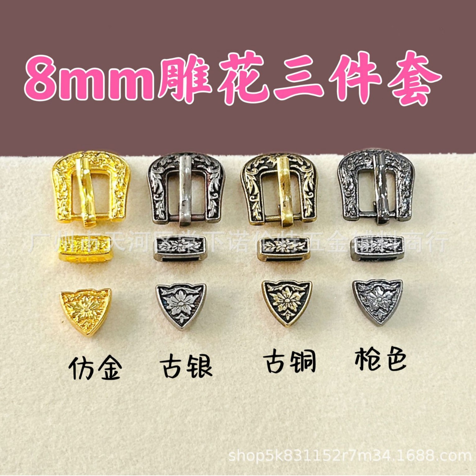 8mm雕花皮带扣迷你合金针扣三件套BJD三分娃衣扣子皮带扣装饰扣头