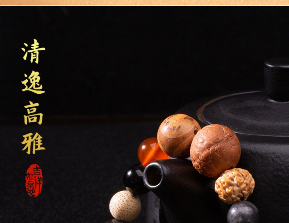 木皮灰黒檀木彫り貔貅 四面仏十八羅漢仏珠ブレスレット108玉