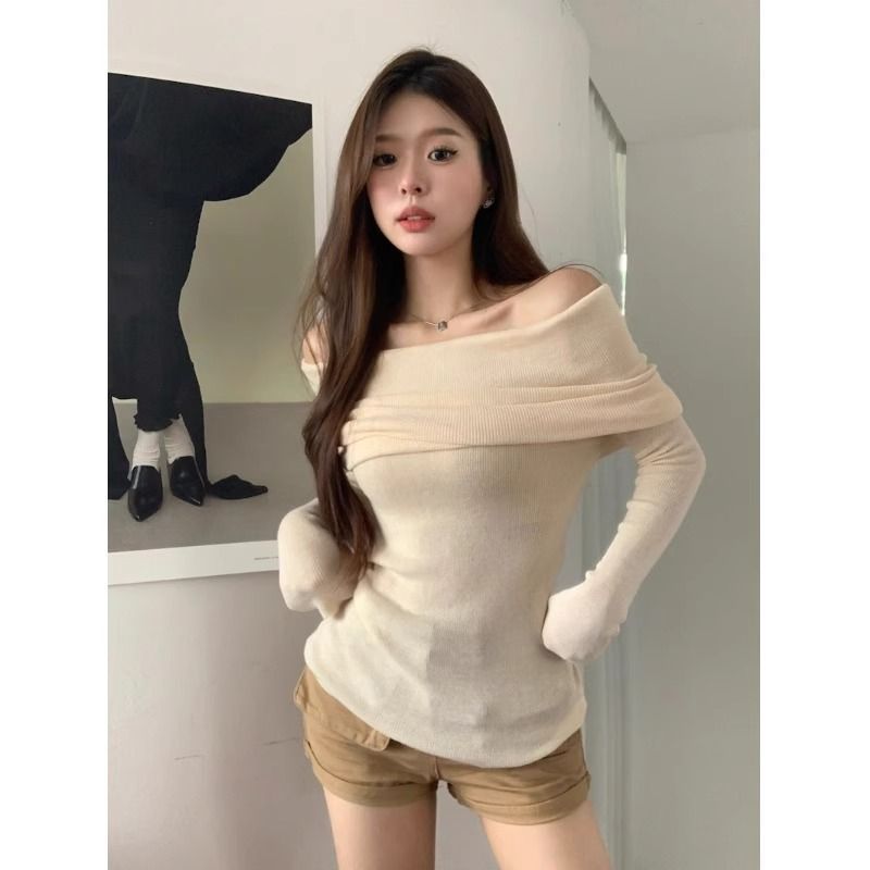 一字肩上衣女秋季设计感毛衣气质露肩别致内搭针织毛织打底衫毛衣